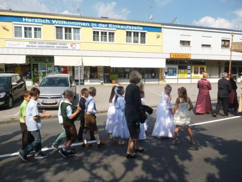 Doch auch Traditionen müssen sich der aktuellen Situation stellen - sagt man doch: "wer nicht mit der Zeit geht, geht mit der Zeit....". In diesem Sinne haben wir heuer wortwörtlich "neue Wege" beschritten: eine Fronleichnamsprozession mit neuem Verlauf und neuen Perspektiven...