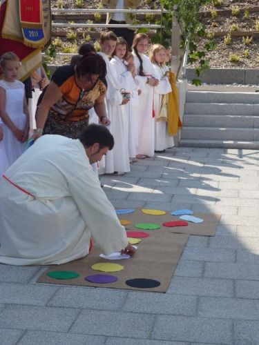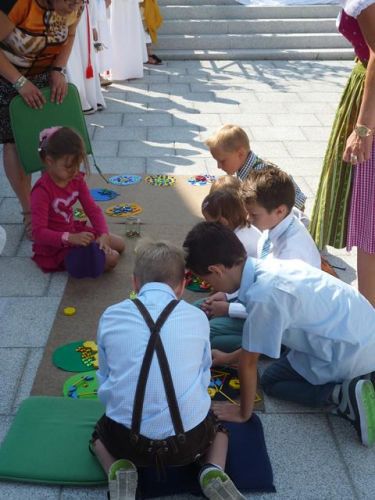 Beim Gemeindeamt wird traditionell für die Belange der Gemeinde gebetet. Erstmals wurde der Segen am neuen Marktplatz gespendet. Für die Kinder gab es ein eigenes Programm, bei dem mit verschiedenen Materialien bunte Bilder entstanden sind.