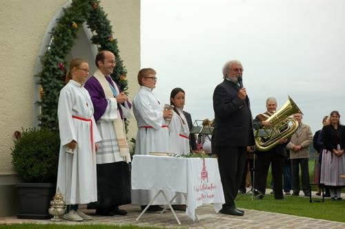 Am 31. August wurde die Gumplinger Kapelle nach dreijähriger Bauzeit durch die Weihe ihrer Bestimmung übergeben. Herr Pfarrer Mag. Markus Menner hat unter großer Teilnahme der Pfarrbevölkerung eine sehr feierliche Messe zelebriert und anschließend vor Ort die Kapelle geweiht. Gefeiert wurde dann im KultOs mit kleinen Ansprachen, einer Fotorückschau und musikalischer Umrahmung.