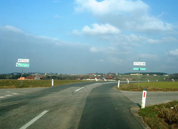Auf dem Weg nach St. Florian überraschen uns zwei Wegweiser, die in die entgegengesetzte Richtung, aber zum selben Ziel führen ...
