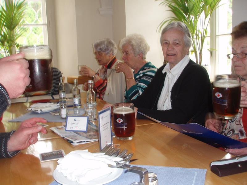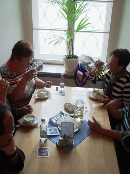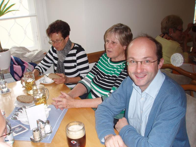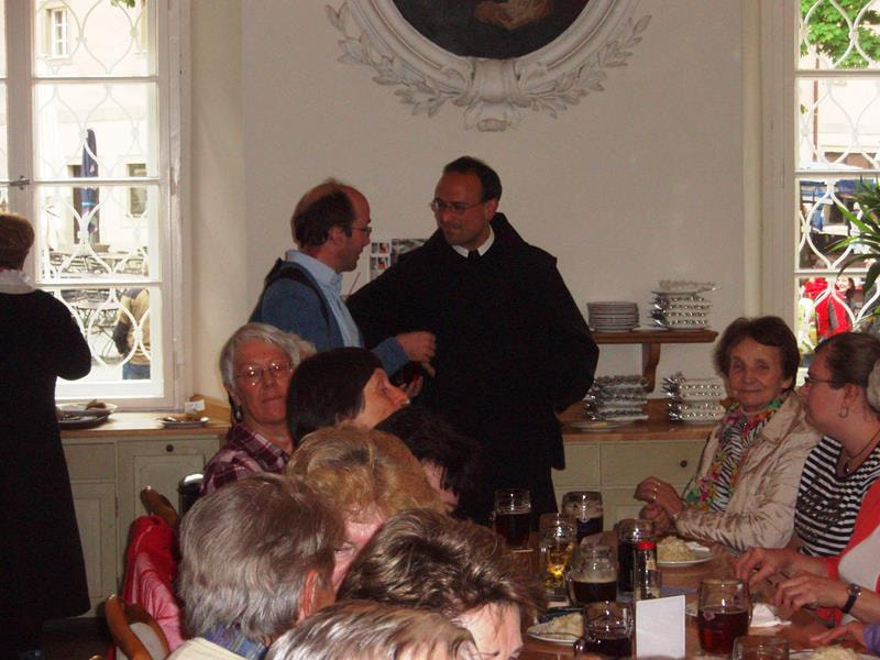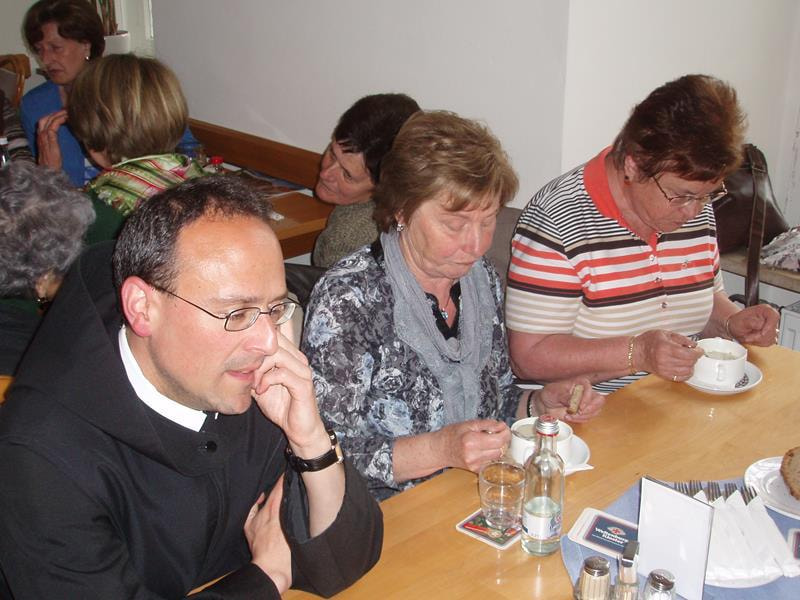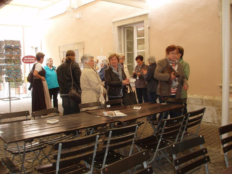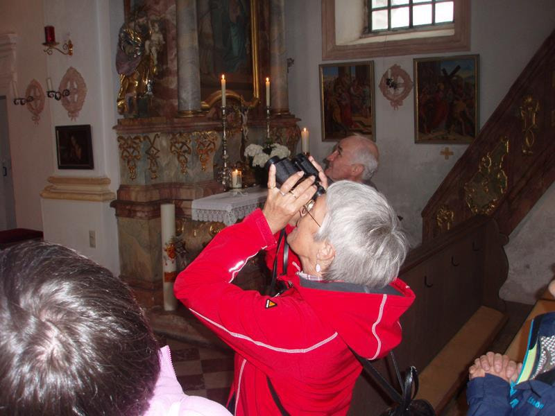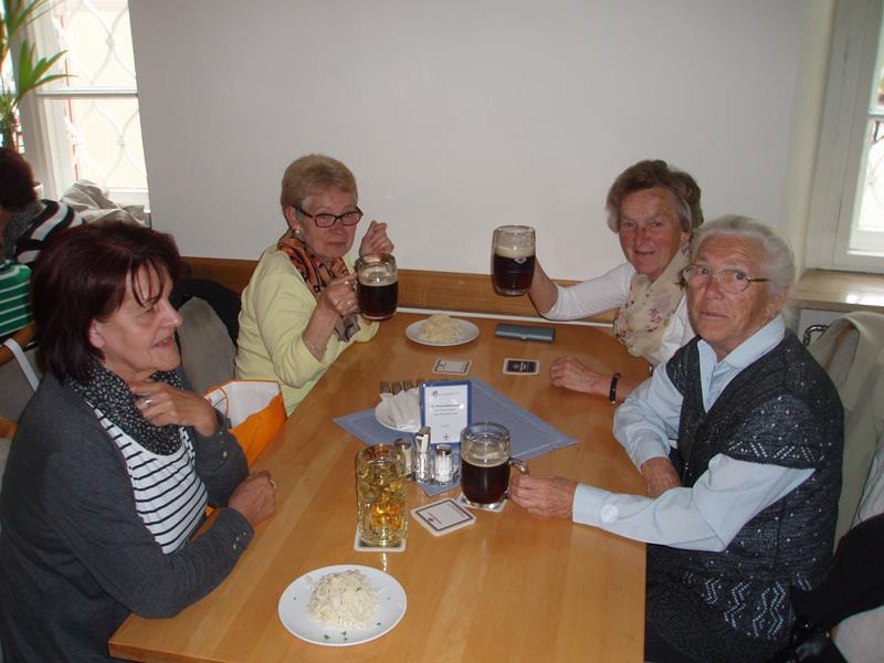 Herr Pfarrer begrüßte uns mit einem Pilgergebet und wir beteten den Rosenkranz. Chauffeur Walter machte einen kurzen Abstecher über Abensburg, um uns den Hundertwasserturm zu zeigen. Pünktlich erreichten wir unser Ziel und feierten Messe in der Nikolauskapelle. Anschließend ging es zum Mittagessen, wo man das gute Weltenburger Bier probieren konnte. Unser Herr Pfarrer traf sich mit seinem Studienkollegen.