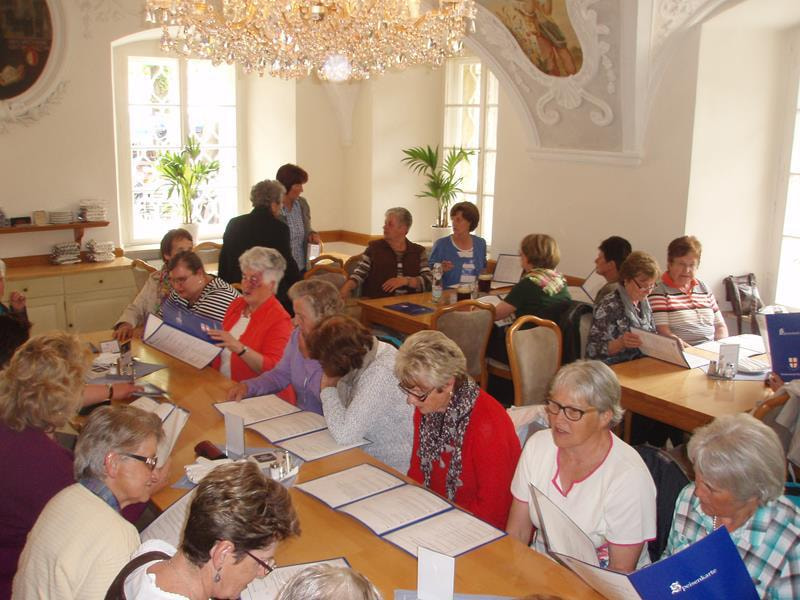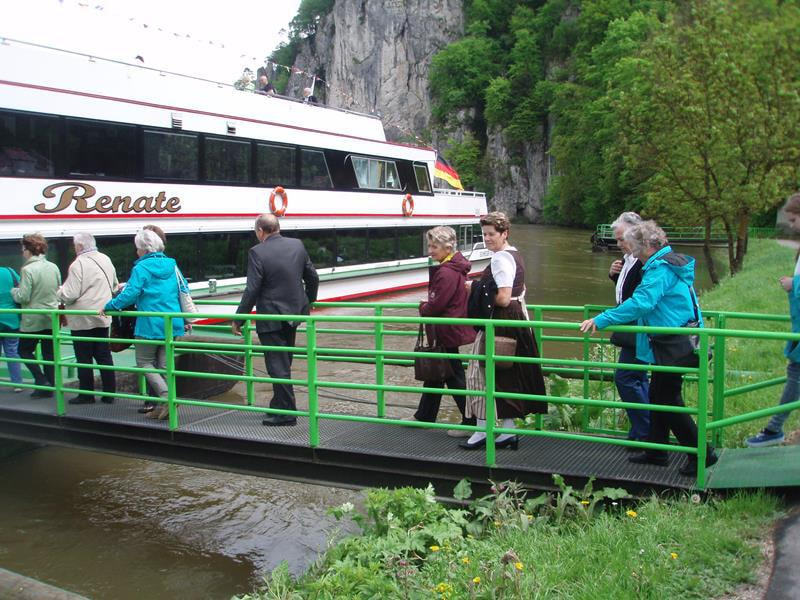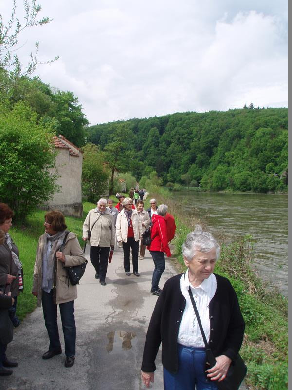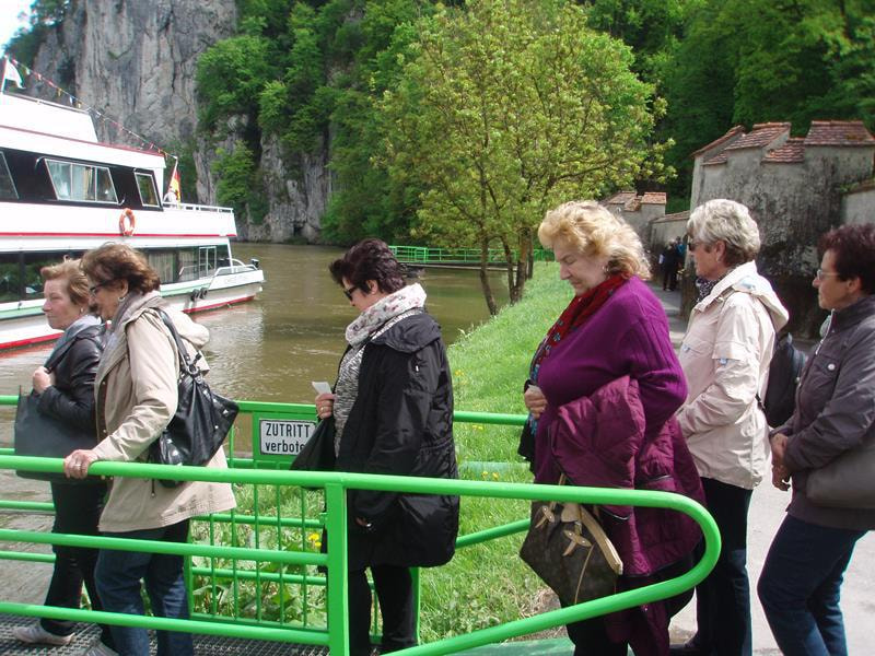 Schon mussten wir weiter zum Schiff, das uns durch den bekannten Donaudurchbruch von Weltenburg nach Kehlheim brachte. Diese Fahrt genossen wir bei Kaffee und Kuchen, sodass uns das bisschen Regen nicht störte. Mit dem Bus fuhren ging es zum nächsten Ziel, Maria Anzenberg in Niederbayern.