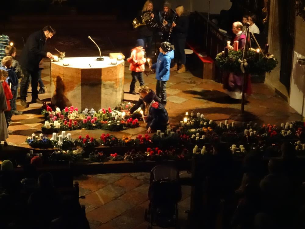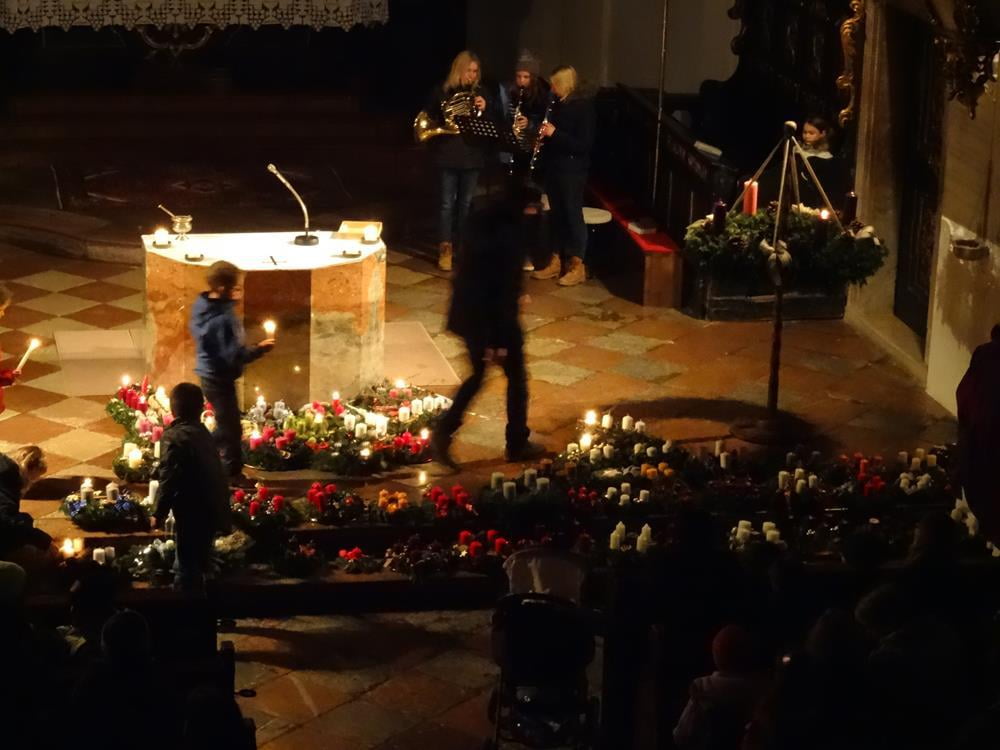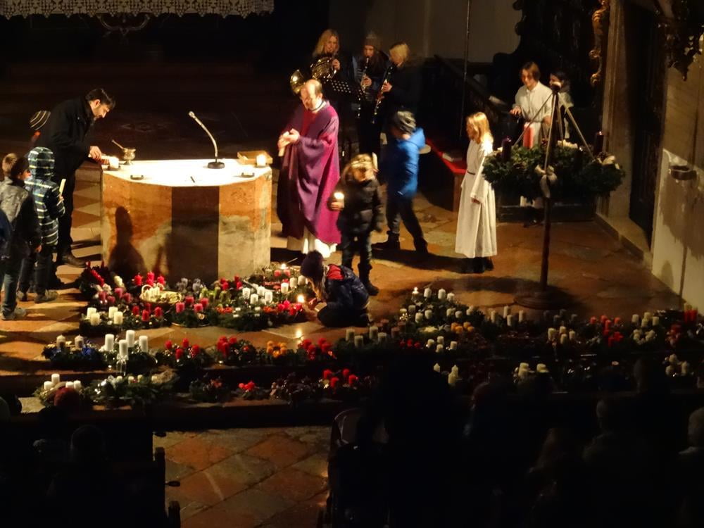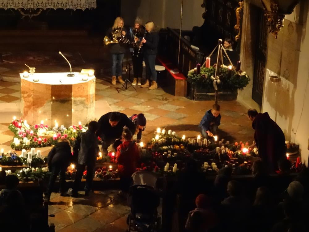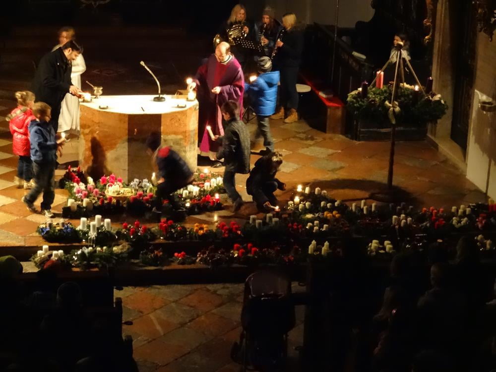 Erleben Sie hier die Segnung der Adventkränze ... und wie es allmählich Licht wird in der Kirche.