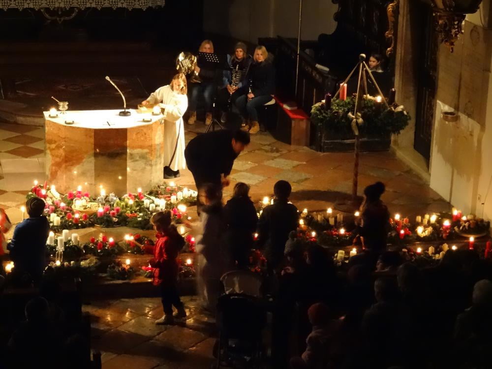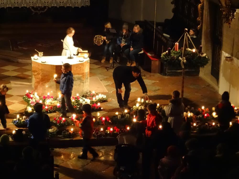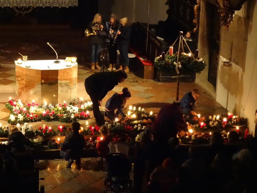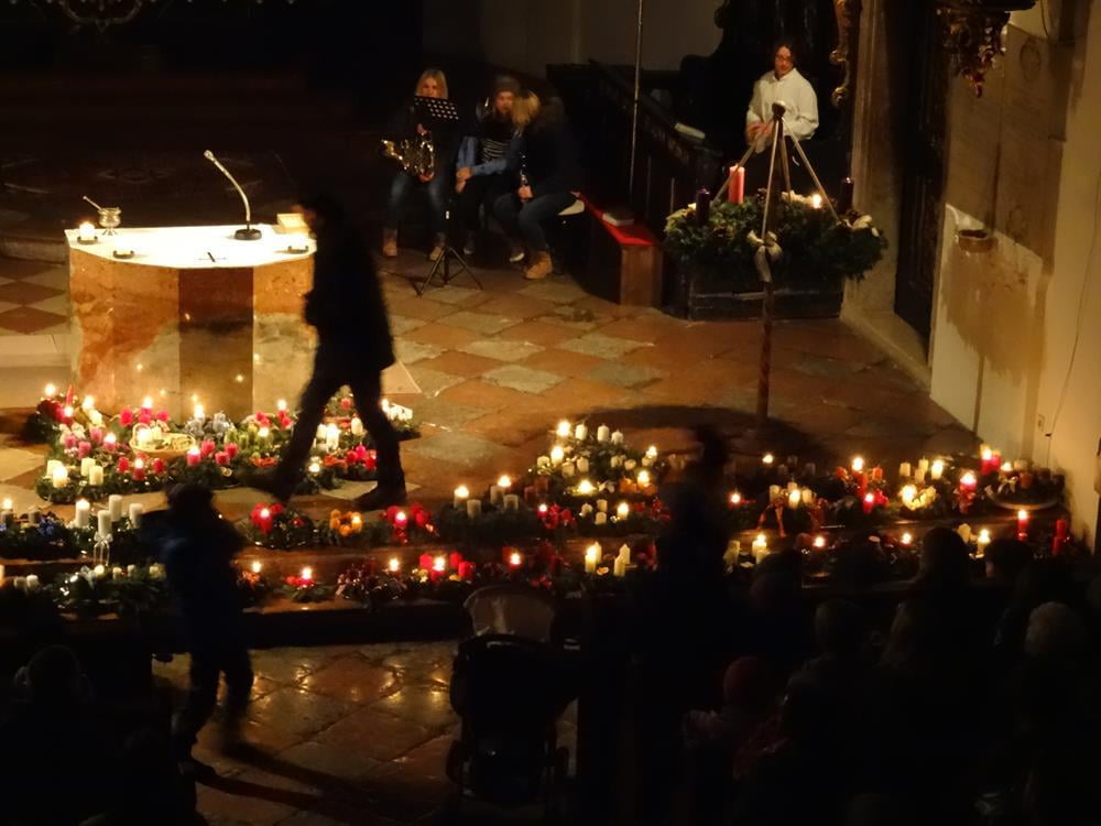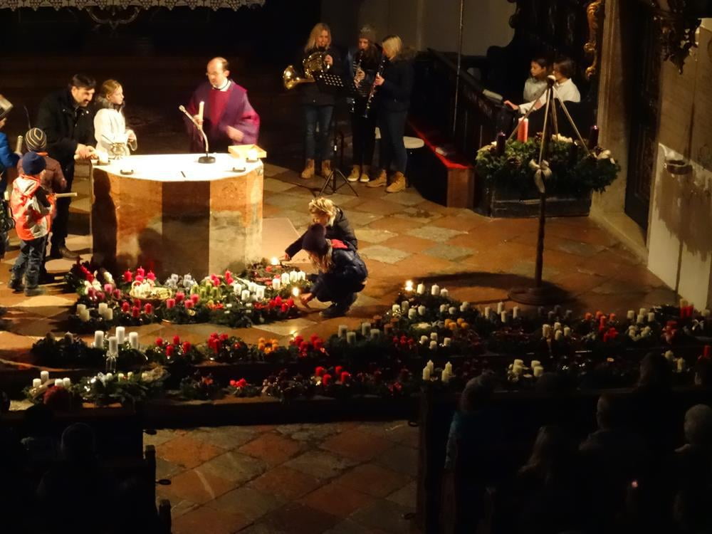 Erleben Sie hier die Segnung der Adventkränze ... und wie es allmählich Licht wird in der Kirche.