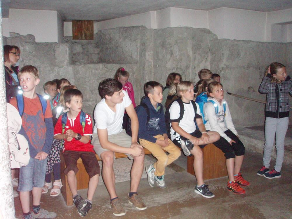 Danach gingen wir zum Taufbecken, zu dem es ebenfalls eine interessante Geschichte gab. Diese lautete: Wenn man das ganze Taufbecken putzen möchte, muss ein kleiner Kran den schweren Steindeckel aufheben.
