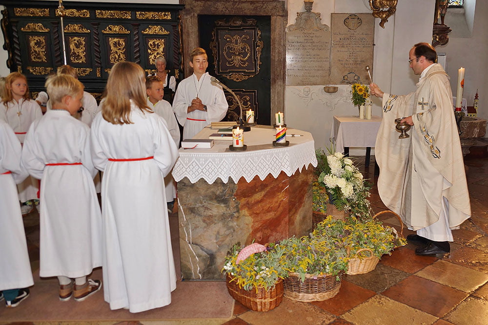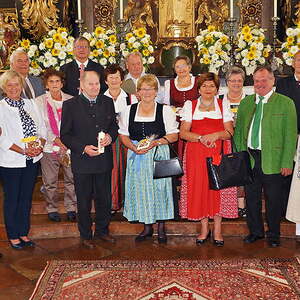 In einer bewegenden Feier wurden unsere Jubelpaare gewürdigt, geehrt und gesegnet. Von den Goldhauben bekamen wir wieder duftende Kräutersträuße, die zuvor von unserem Pfarrer Markus Menner gesegnet worden waren.