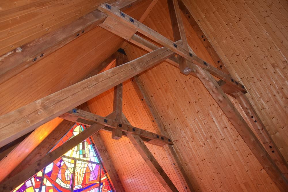 Mit fahrerischer Sicherheit meisterte unser Chauffeur „Sepp“ die vielen und engen Kehren auf die Tauplitz-Alm im Steirischen Salzkammergut. Beim Kirchenwirt wurden wir von einigen Kapellenvereins Mitgliedern aus der Gemeinde Tauplitz empfangen. Zusammen Messe feiern war das Ziel dieser Reise. Die ansonsten einfach gehaltene Bergkirche wird von einem bunten Glasfenster des Künstlers Alfred Wickenburg beherrscht, welches die ganze Front einnimmt und den Altarraum durch das herein strahlende Sonnenlicht in eine einzigartige Stimmung versetzt.