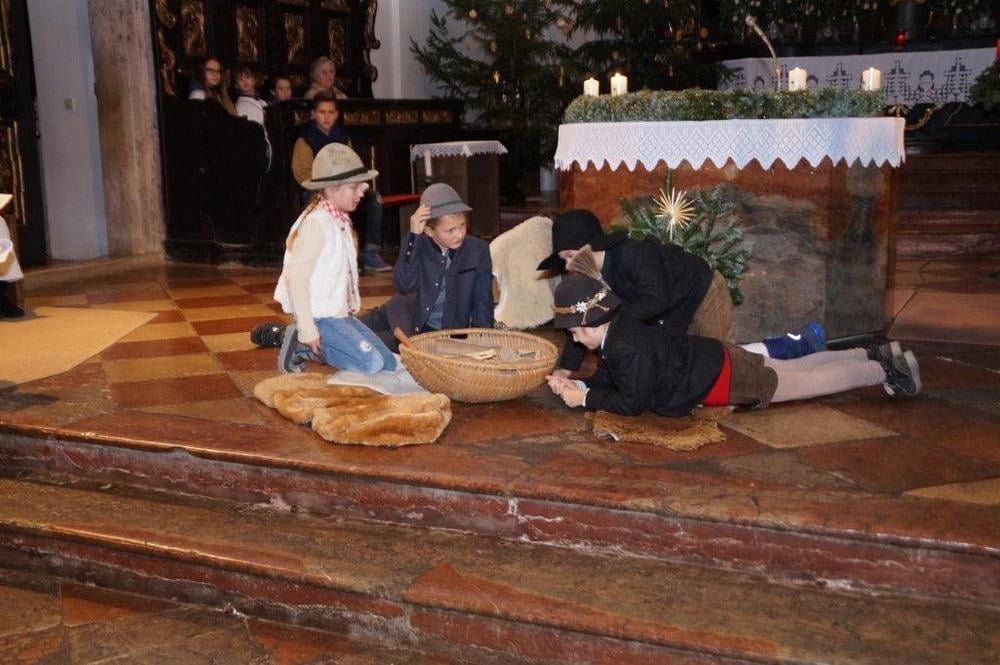 Ganz eifrig haben die Kinder heuer wieder für das Krippenspiel geprobt. Der Text in der Mundart war gar nicht so leicht zu merken.