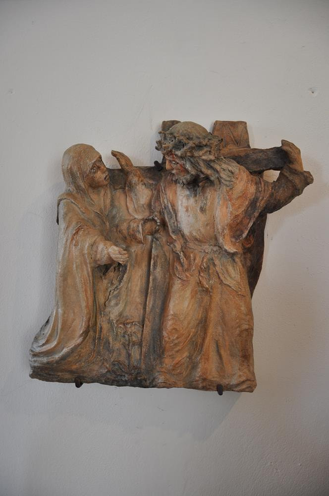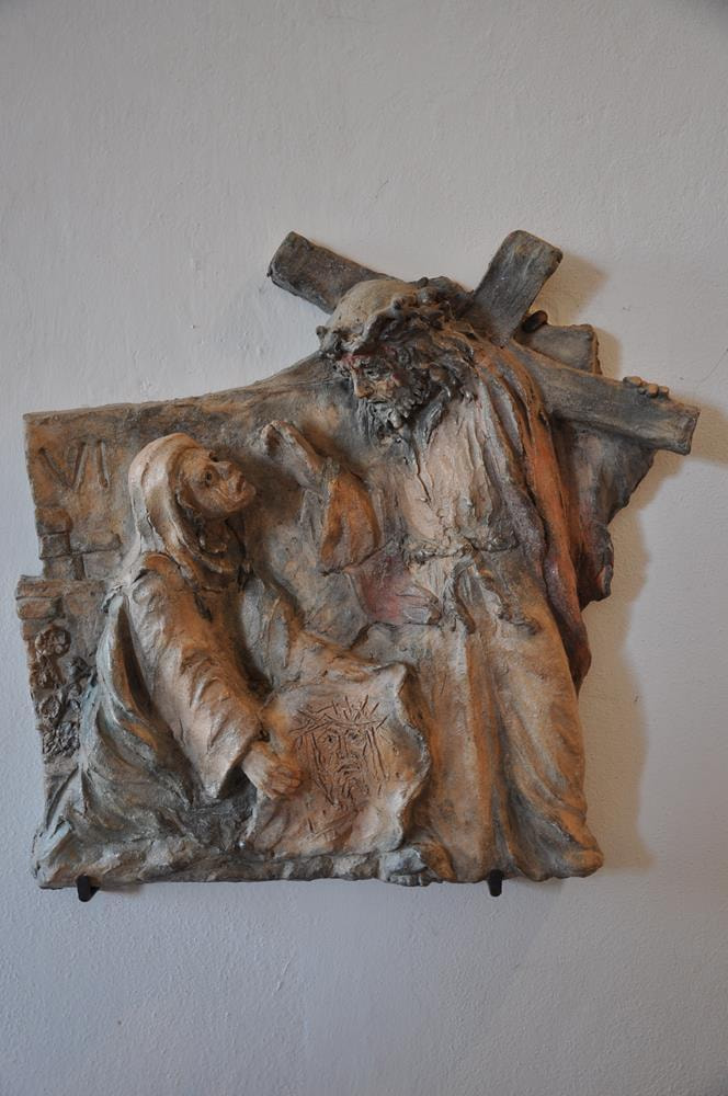 Veronika reicht Jesus das Schweißtuch.