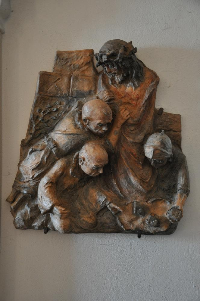 Jesus fällt zum ersten Mal unter dem Kreuz.