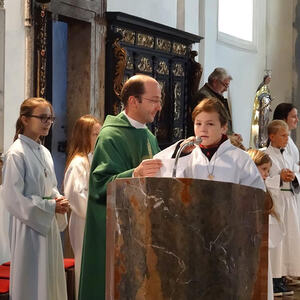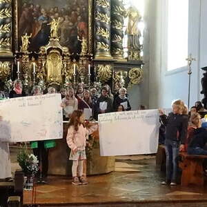 Auf den Bildern sind unter anderem die Ergebnisse der Gedanken, die sich die Kinder machten, zu sehen. Der Familienchor untermalte diese berührende und lebendige Messe mit stimmungsvollem Gesang.