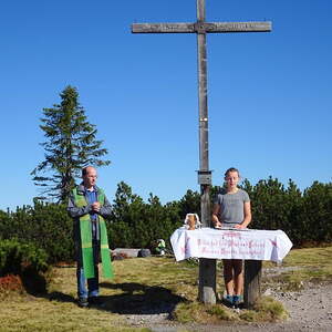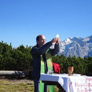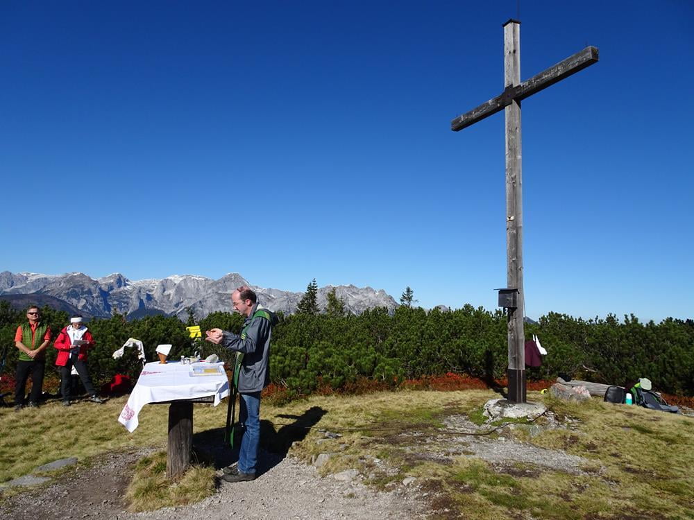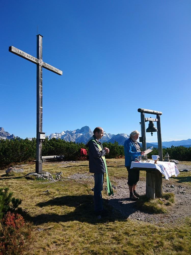 Wir hatten Traumwetter, deshalb wurde die Bergmesse auch zu einem unvergesslichen Erlebnis. Pfarrer Mag. Markus Menner zelebrierte wieder eine würdige Gipfelmesse, predigte nur ganz kurz, denn diese Natur und die wunderbare Umgebung brauchten kaum Worte, meinte er.