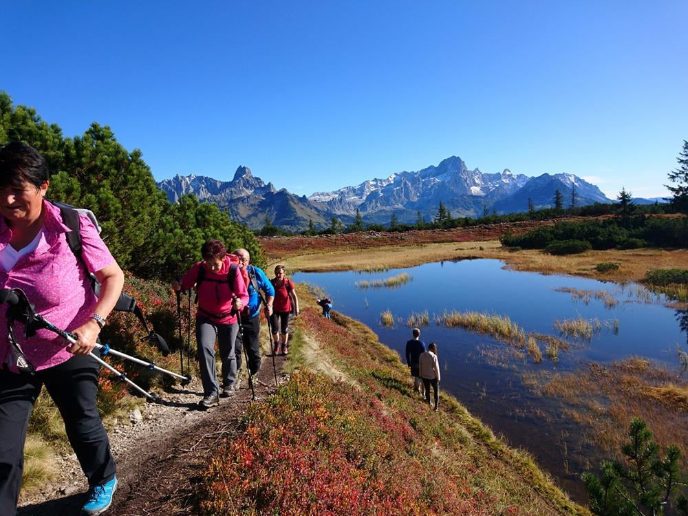 Wir fuhren über die Tauernautobahn bis Eben, dann Richtung Filzmoos bis Schattau, dort links hinauf bis zum Parkplatz beim Knappbauern. Nun folgt man den Tafeln „Gerzkopf“ und erreicht in 1 ¾ Stunden, vorbei am Naturschutzgebiet Schwarze Lacke, den aussichtsreichen Gipfel.