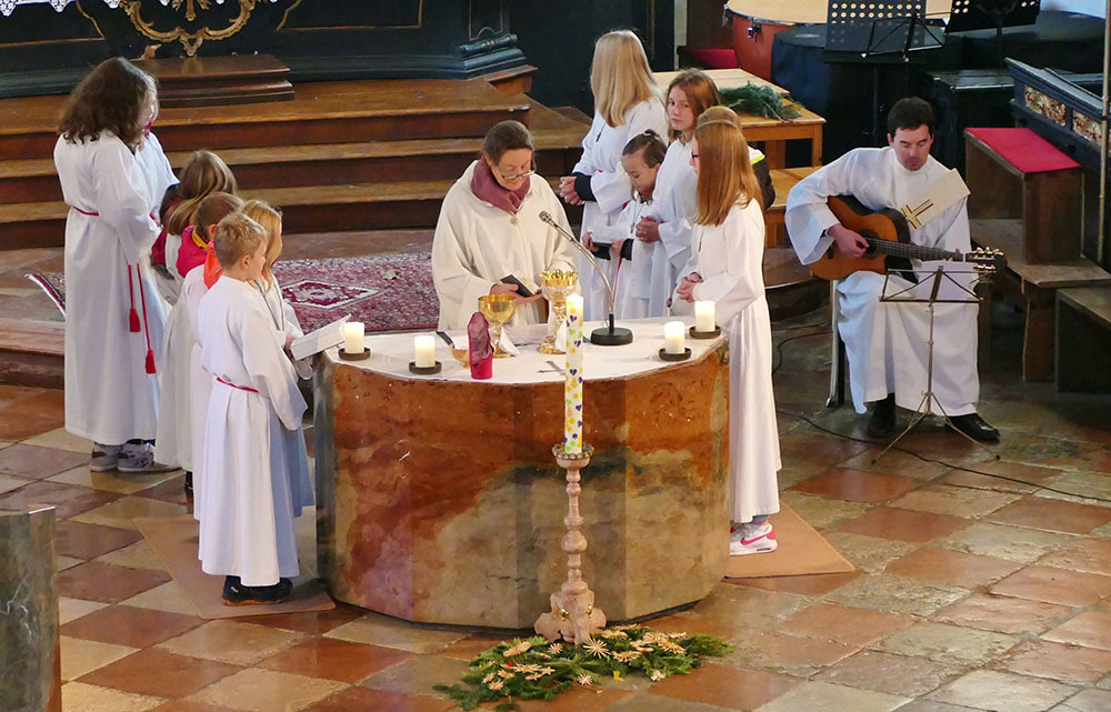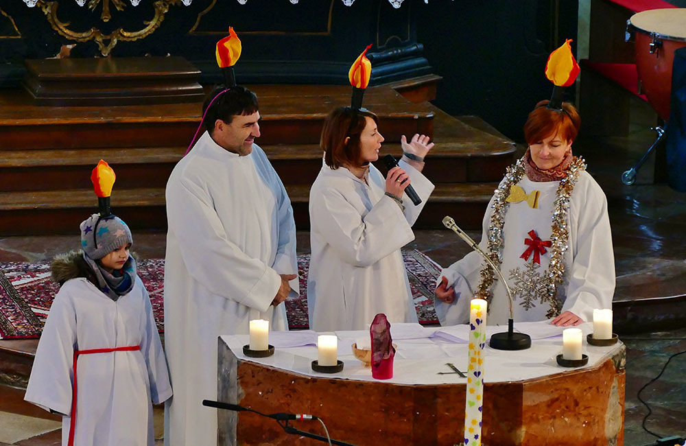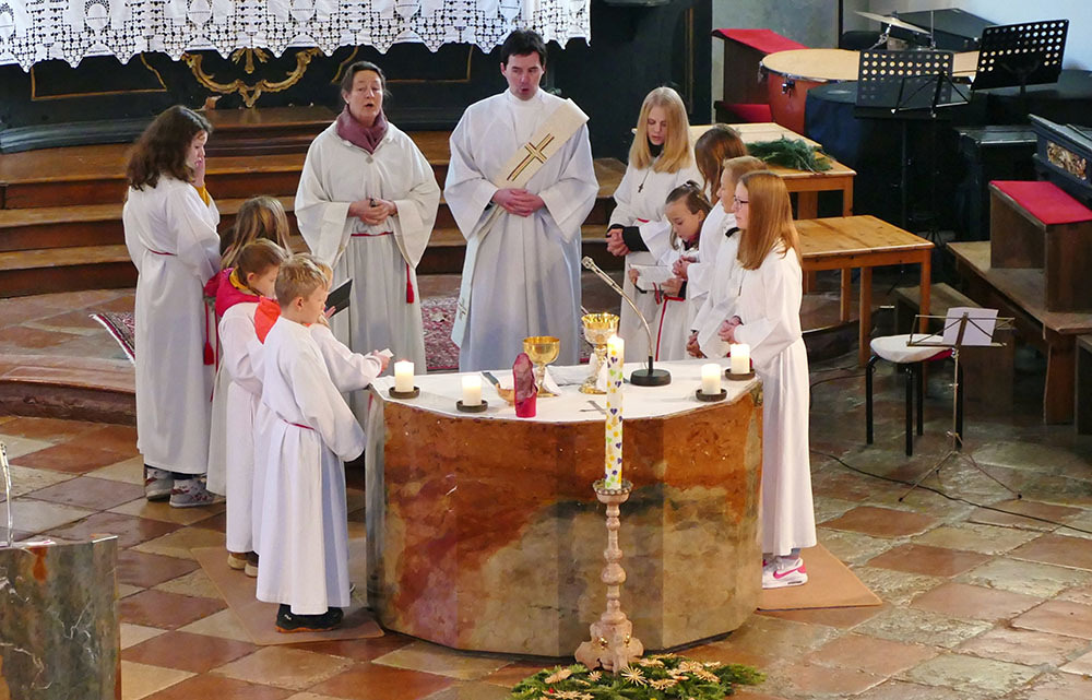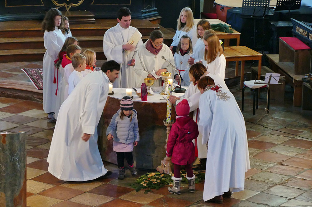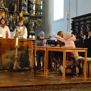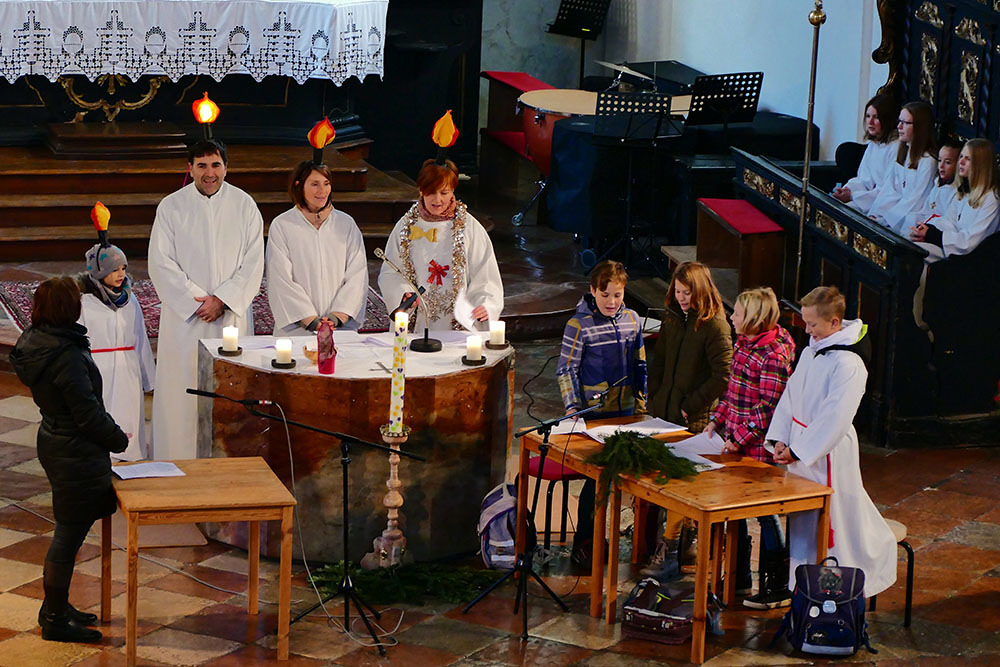 Unsere kleine Schulklasse spricht mit der Lehrerin über den bevorstehenden Advent und bekommt den Auftrag, am kommenden Sonntag eine Kerze mitzubringen. Die vier Kinder sind sehr motiviert und haben schon Ideen, welche Kerzen sie auswählen werden ...