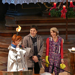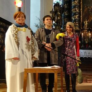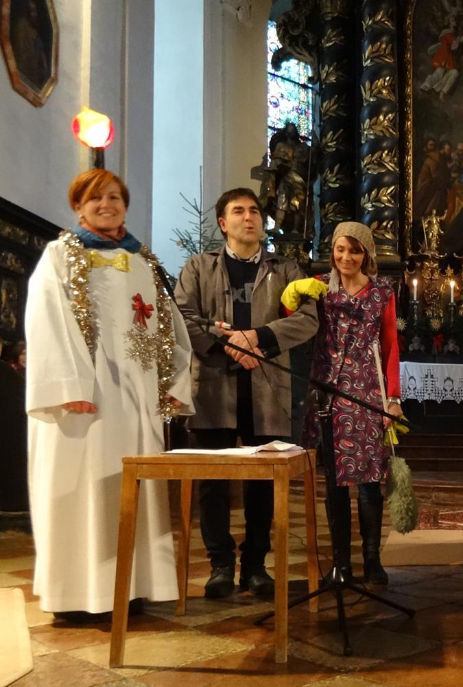 Doch bevor sie ganz in Trübsal versank, kam die glückliche Wende: Die Putzfee und der Hausmeister der Schule hatten sich zum Weihnachtenfeiern zusammengetan und entdeckten auf ihrem Rundgang unsere einsame Dekokerze, die sie anzündeten und so ihr Weihnachtsfest verschönerten.
