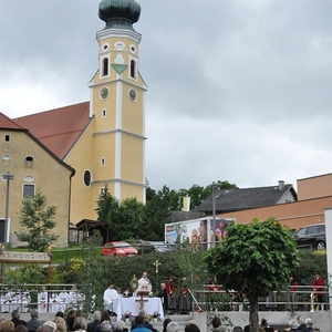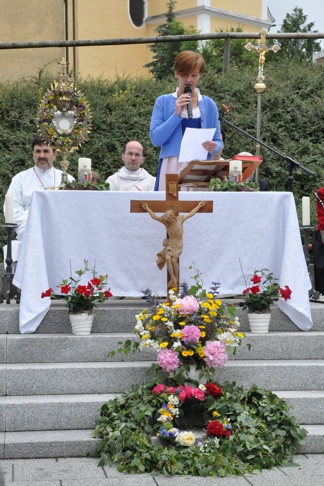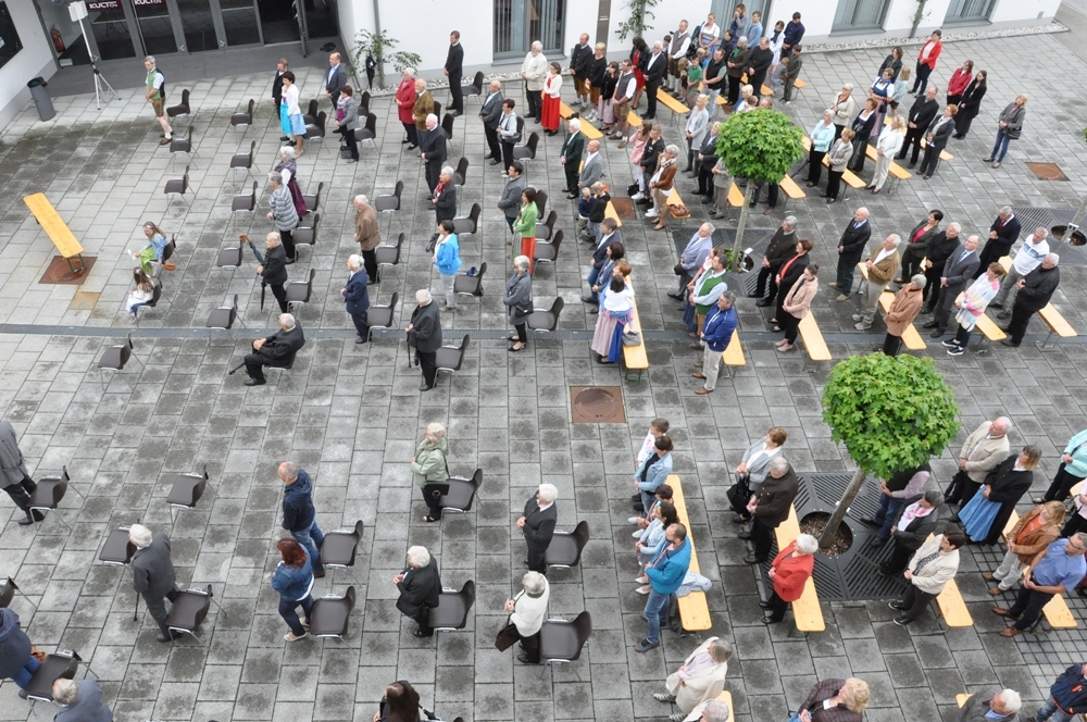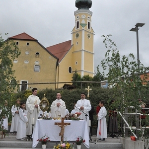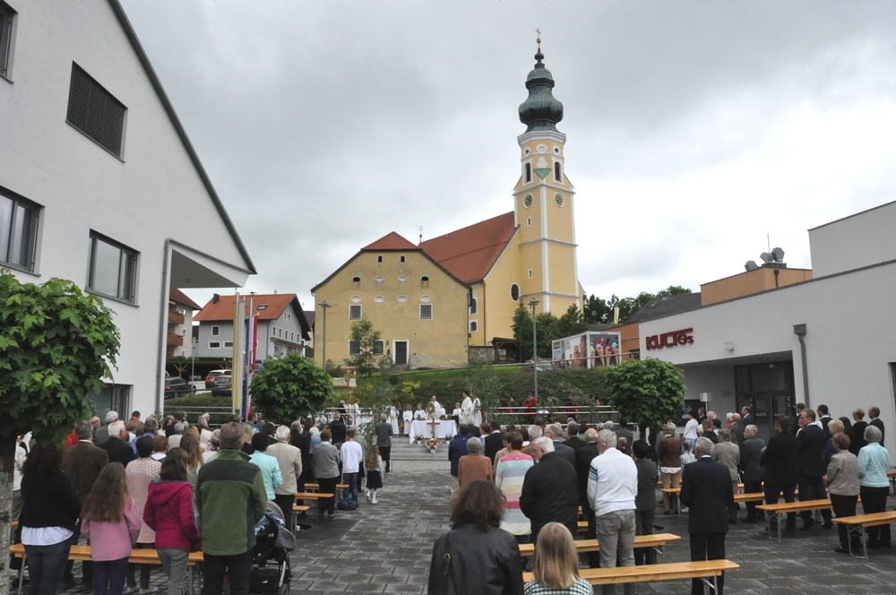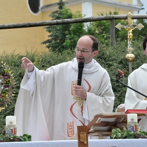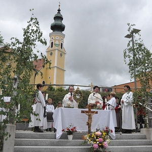 Dieses Wort des Engels zum Propheten Elija, bildete den Kern des Festgottesdienstes zum Fronleichnamstag am Marktplatz. Der wandermüde Prophet in der Wüste ist am Ende, er kann nicht mehr. Doch durch die Speise von Brot und Wasser gestärkt, kann er seinen schweren Weg wieder fortsetzen und die unwirtlichen Verhältnisse des lebensfeindlichen Umfeldes können ihm nichts mehr anhaben.