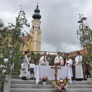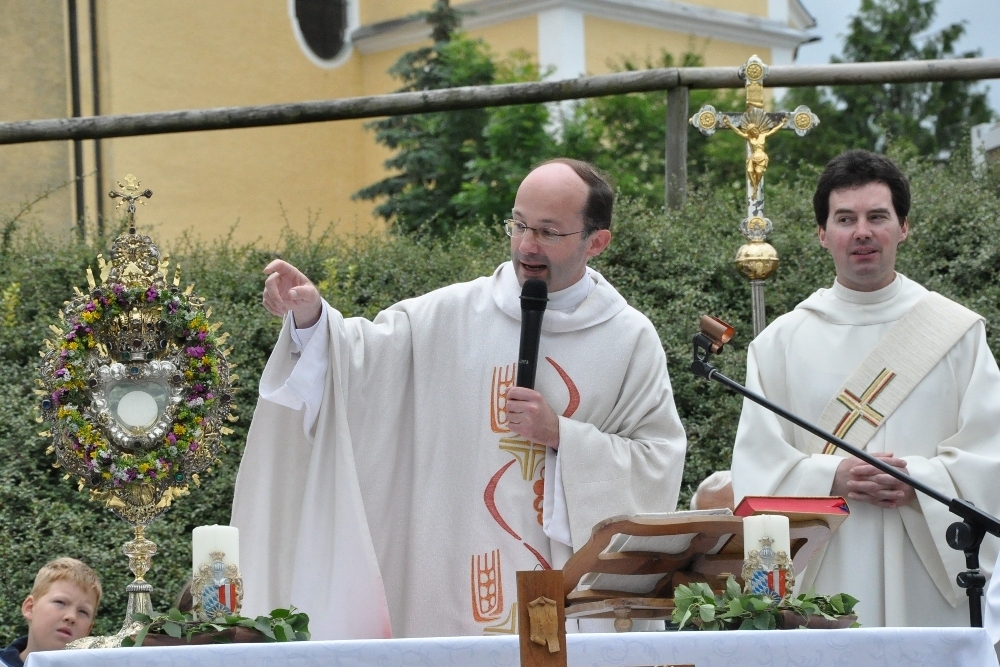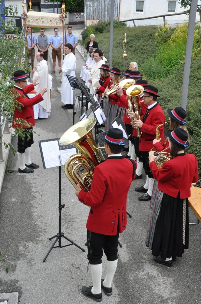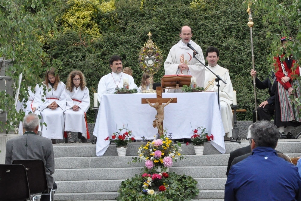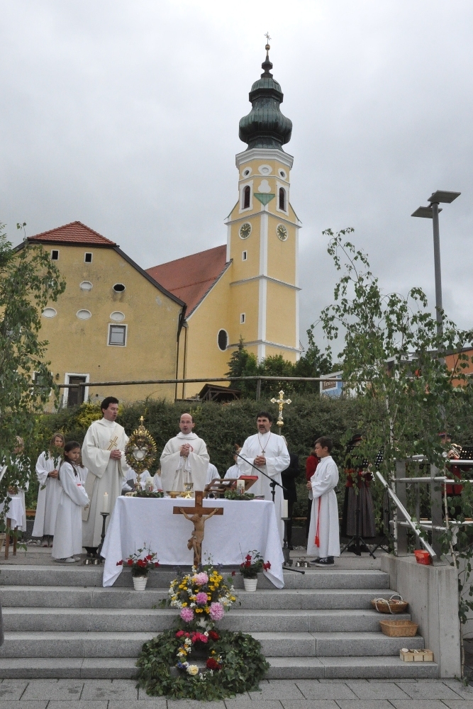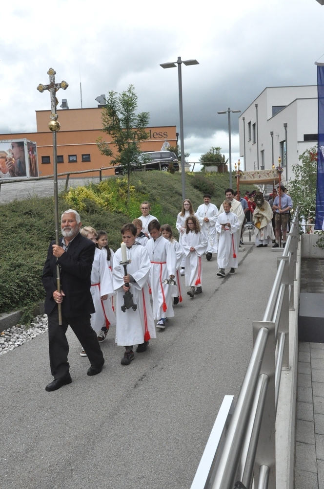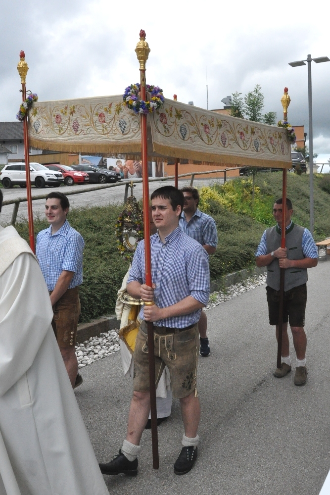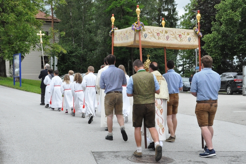 Trotz wolkenverhangenen Himmels fiel kein Tropfen Regen und der eucharistische Segen mit unserer so wertvollen, heuer erstmals auch mit einer bunten Blumengirlande zusätzlich geschmückten Monstranz bildete wohl den Höhepunkt unseres Feierns!