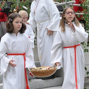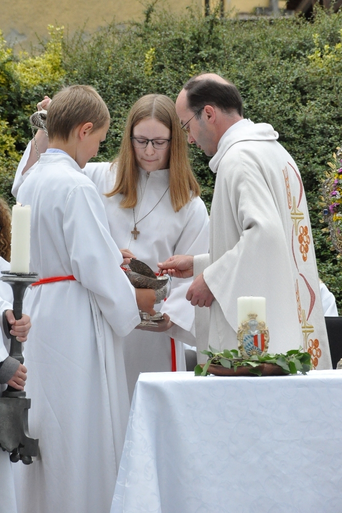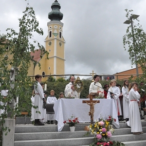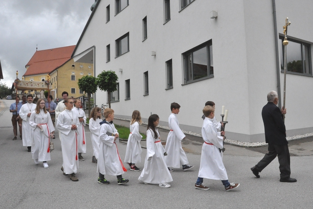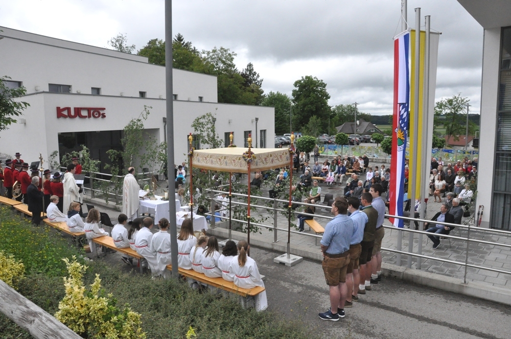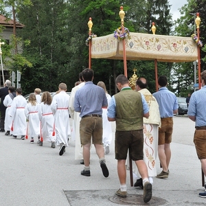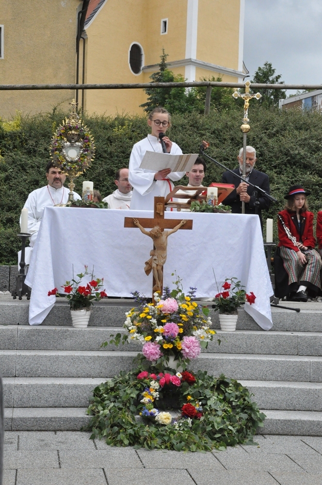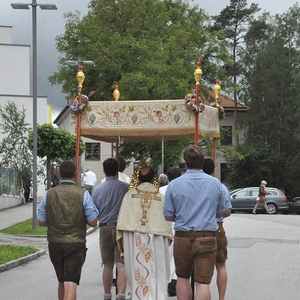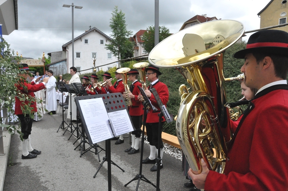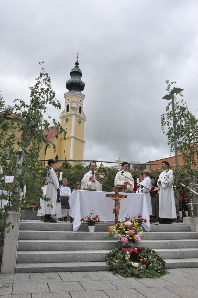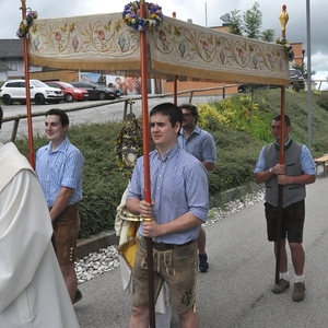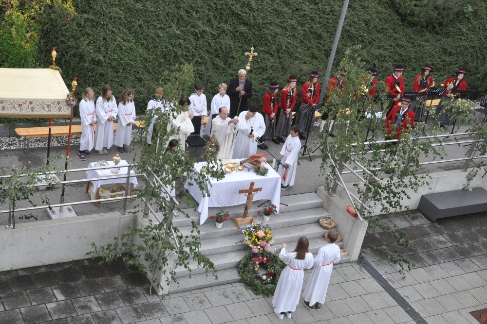 Trotz wolkenverhangenen Himmels fiel kein Tropfen Regen und der eucharistische Segen mit unserer so wertvollen, heuer erstmals auch mit einer bunten Blumengirlande zusätzlich geschmückten Monstranz bildete wohl den Höhepunkt unseres Feierns!