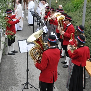 Den festlichen Rahmen der Messe bildeten die festlichen Bläserklänge der „Rasselbande“, die vielen Ministranten und alle Mitfeiernden.