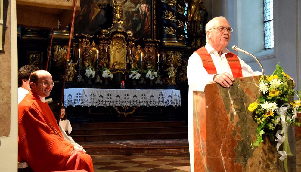 Diese Episode war der Kerngedanke meiner Predigt zum 55jährigen Priesterjubiläum von Pfarrer Josef Steinkellner, Tarsdorf, der mit uns in Ostermiething in der festlich geschmückten Kirche am 29. Juni, dem Priesterweihetag, einen feierlichen Gottesdienst zelebrierte.