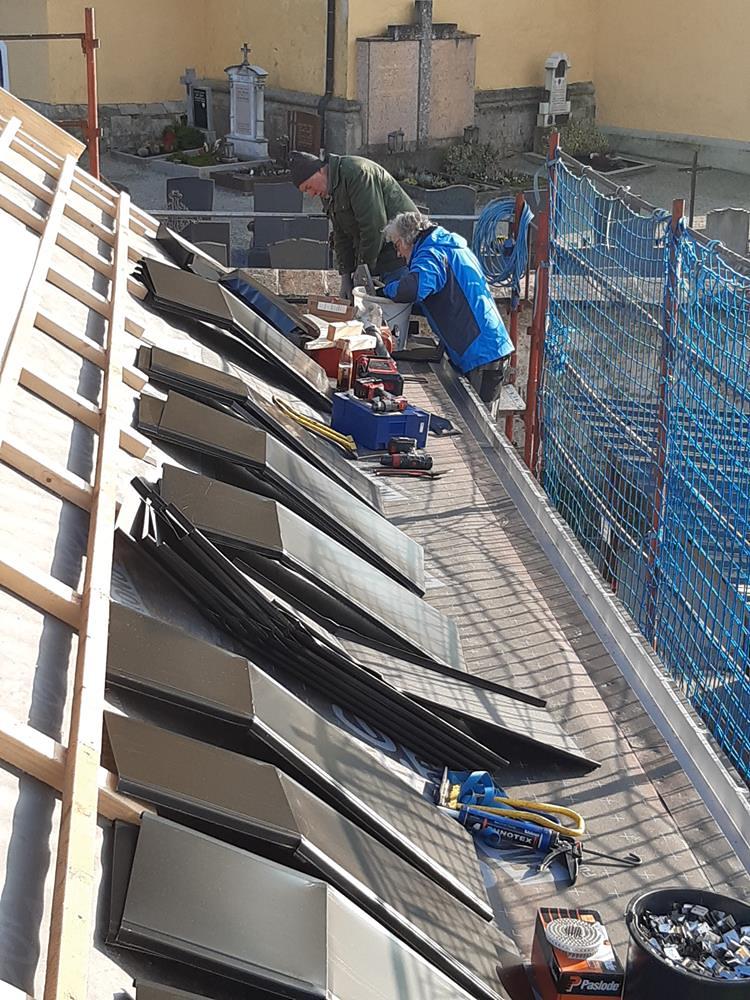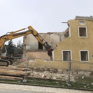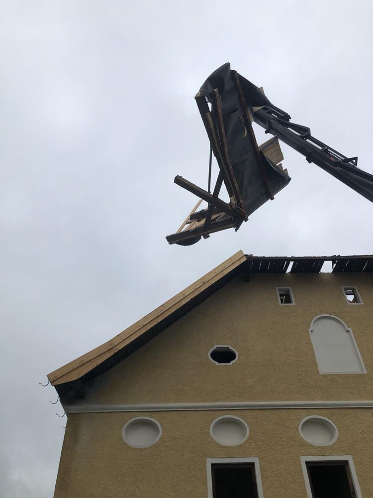 - Ausräumen und Entkernen des alten Pfarrheimes und Abnehmen der Dachziegel für die Wiederverwendung.