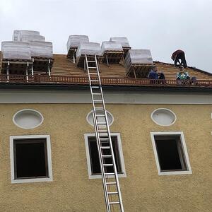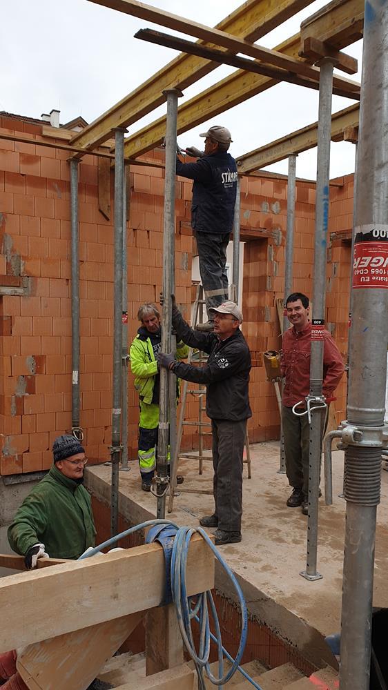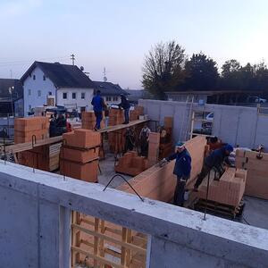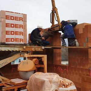 - Geschoßrohbau herstellen, Dachstuhl aufstellen und Spenglerarbeiten