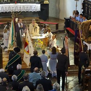 Unter dem Motto „Gott baut ein Haus, das lebt!“ feierten wir unser Erntedankfest mit der anschließenden Segnung des neuen Pfarrheims durch Bischof Dr.Manfred Scheuer. Festliche Musik und herzliche Worte begleiteten uns durch diesen Tag, beginnend mit der Segnung der von der Zeche Ernsting wunderschön gebundenen Erntekrone, über die Feier der Festmesse in unserer dem Anlass entsprechend farbenfroh und herbstlich geschmückten Kirche bis hin zum Festakt, der mit dem Lied „Großer Gott wir loben dich“ einen gebührenden Ausklang fand.