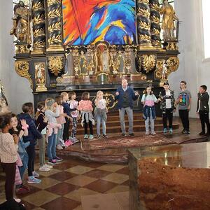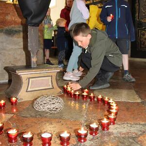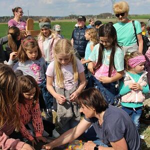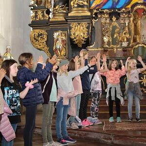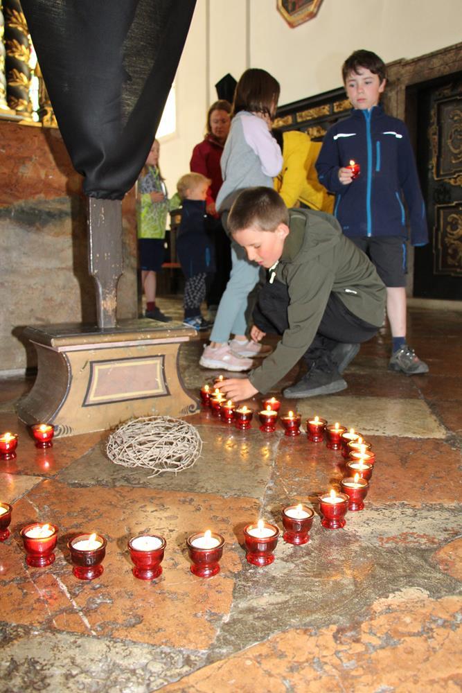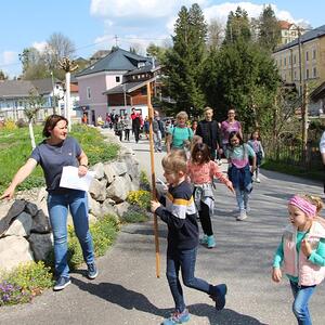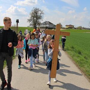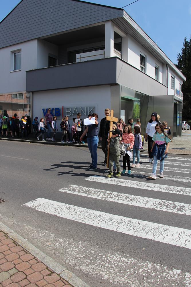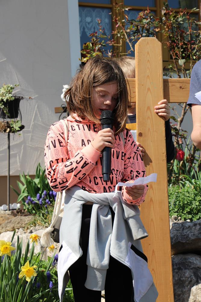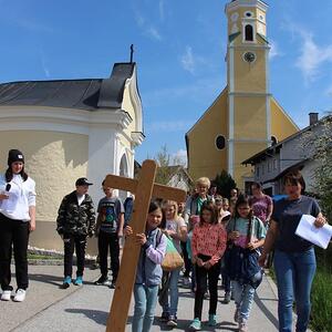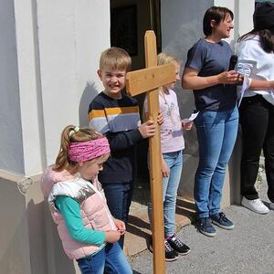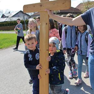 Sehr erfreulich war es für das Kinderliturgieteam, dass der Kinderkreuzweg wieder bei schönstem Wetter durchgeführt werden konnte und dass der Einladung knapp 40 Kinder, teilweise mit ihren Eltern, gefolgt sind.