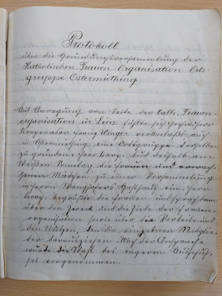 Der Weiße Sonntag 1922 war der Gründungstag der KFO Ostermiething. An jenem Sonntag nach Ostern schlossen sich 81 Frauen zusammen, um frauenrelevanten Themen in Kirche und Gesellschaft mehr Gewicht zu verleihen. Als im Jahre 1947, vor 75 Jahren, die katholische Frauenbewegung Österreichs (kfb) gegründet wurde, waren Ostermiethinger Frauen von Anfang an mit dabei.