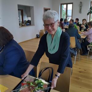 Das Leitungsteam der kfb Ostermiething lud nach dem Festgottesdienst zu einer Agape ins Pfarrheim „Haus der Begegnung“, in dem sich auch kfb-Abordnungen der Nachbarpfarren als Gratulantinnen einstellten. Im Gespräch war immer wieder ein wichtiges Anliegen zu hören:
