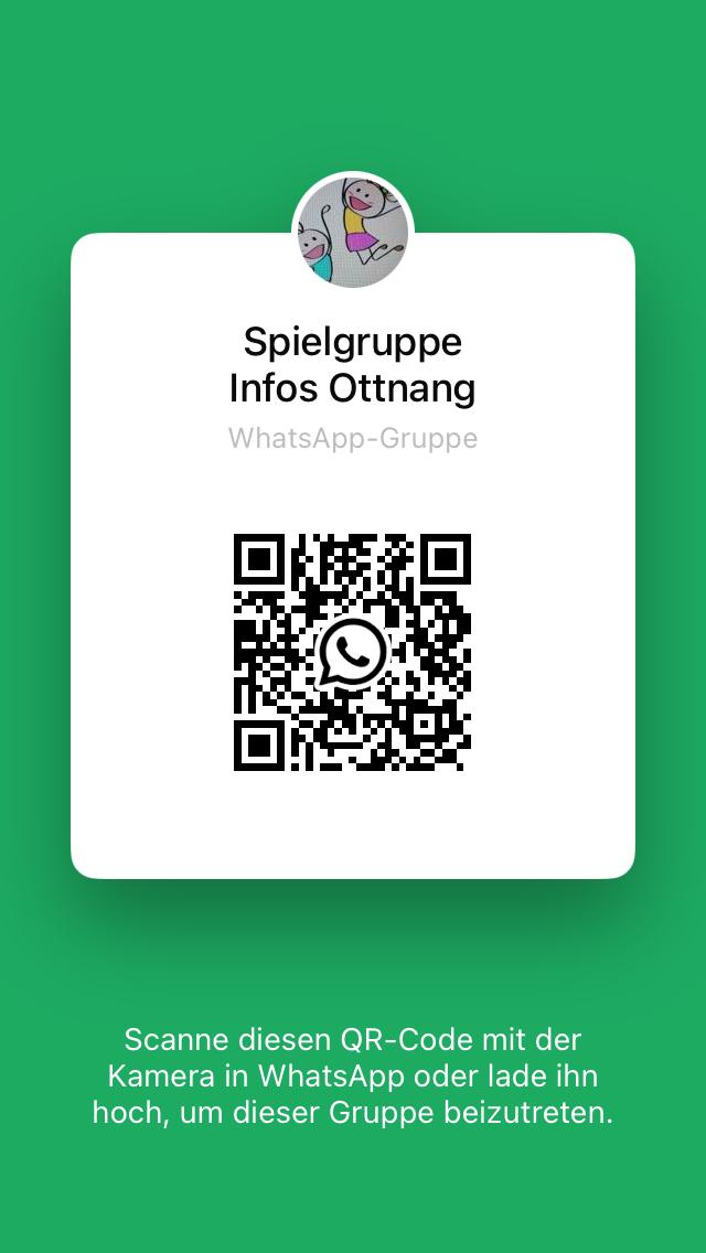 Aktuelle Infos rund um Veranstaltungen und Angebote zum Thema Kleinkind gibt es in unserer Whatsapp-Gruppe „Spielgruppe Info Ottnang“, zu welcher du mit folgendem QR-Code beitreten kannst.