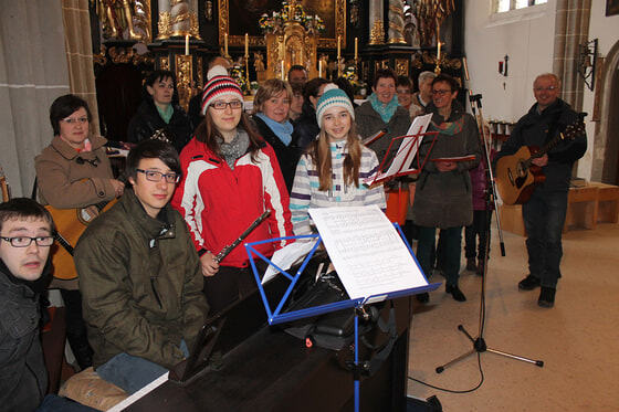 Der Familienchor ist kein Chor im eigentlichen Sinn, der Zuhörer mit musikalischen Darbietungen verwöhnt, sondern ein „Mitmach-Chor für Menschen, die gerne miteinander singen“ und bei den monatlich stattfindenden Familienmessen die Gottesdienstbesucher zum Mitfeiern und –singen anspornen wollen. Wir treffen uns einmal im Monat zur Probe und machen auch jedes Jahr einen Ausflug. Wer bei uns mitmachen will, ist uns herzlich willkommen – und sollte jemand bei uns musikalisch unterfordert sein, kann er oder sie ja noch zusätzlich in unseren hervorragenden Kirchenchören mitwirken.