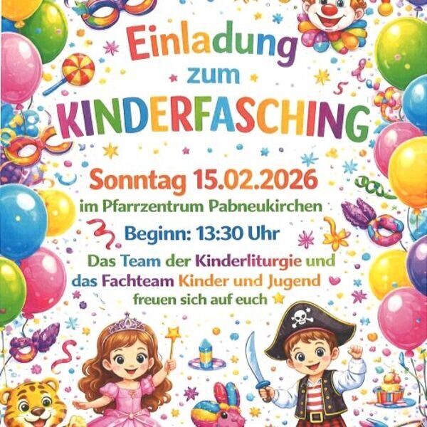 Das Team der Kinderliturgie und das Fachteam Kinder und Jugend laden am Faschingssonntag, 15. Februar 2026 zum Kinderfasching ins Pfarrzentrum ein.