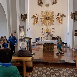 So gab es eine Gruppe die von Pattigham aus in die Schmolln gingen, eine weitere Gruppe aus Amberg. Eine große Gruppe an Radfahrer kamen auch zur Messe und ebenso folgten der Einladung zum Pfarrpilgern viele Familien. Die Kinder marschierten mit ihren Eltern einen kurzen Teil der Pilgerroute Via Nova.