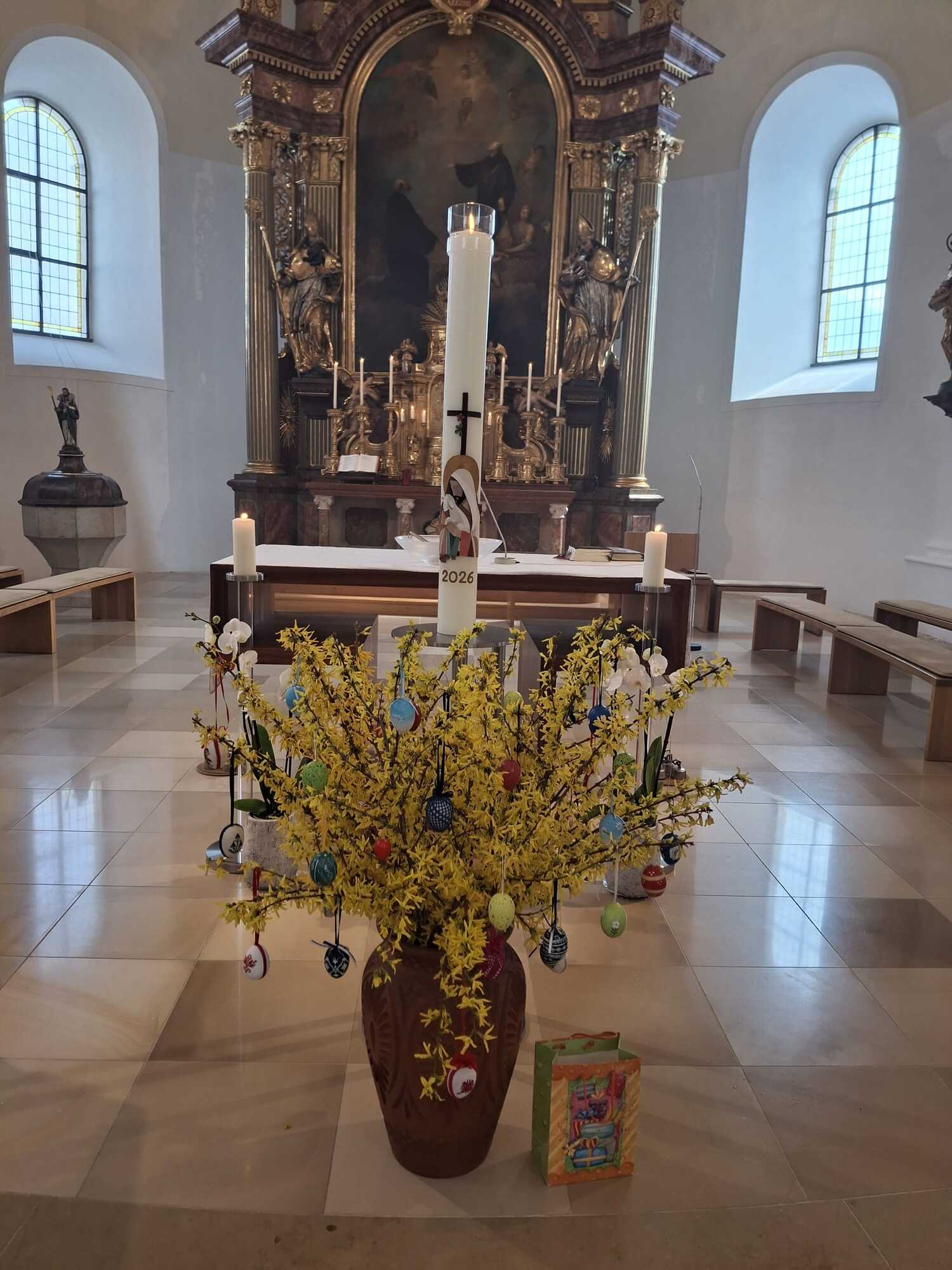 Jakob Zöchbauer, der Vertreter des Osterhasen, hat nach dem Ostergottesdienst die Kinder der Pfarre eingeladen, im Pfarrgarten nach versteckten Ostereiern zu suchen. Es wurden 120 färbige und 9 goldene Eier versteckt. Die Finder der goldenen Eier konnten ihren Schatz gegen einen Schokohasen tauschen. Wie jedes Jahr wurden alle Verstecke innerhalb weniger Minuten aufgefunden.