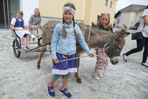 Der heurige Pfarrfrühschoppen wurde nicht traditionell zusammen mit dem Erntedankfest veranstaltet, sondern diesmal termingleich mit der Kindergartenmesse. Dementsprechend umfangreich wurde das Kinderbetreuungsprogramm vorbereitet. Schminken, Buchvorlesung, Esel Carlos, Kirchendachführung, Buchfalten, uvm. standen an der Tagesordnung.