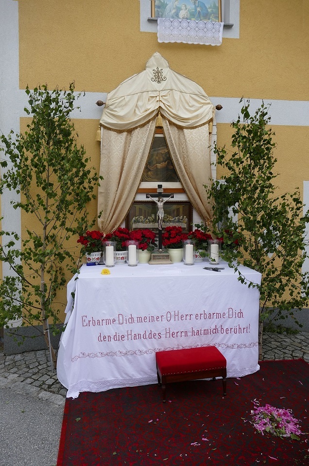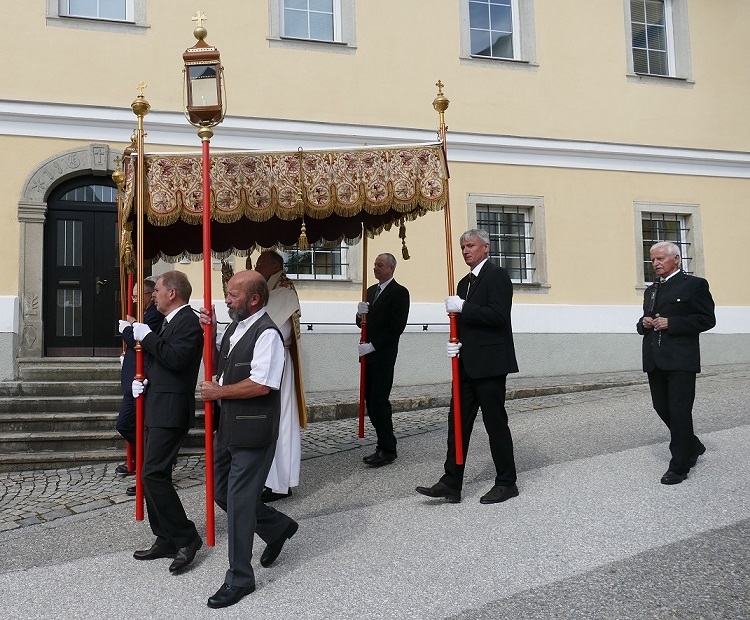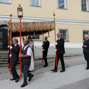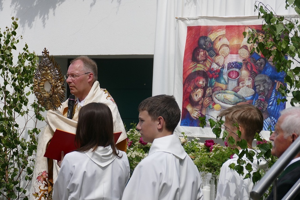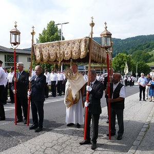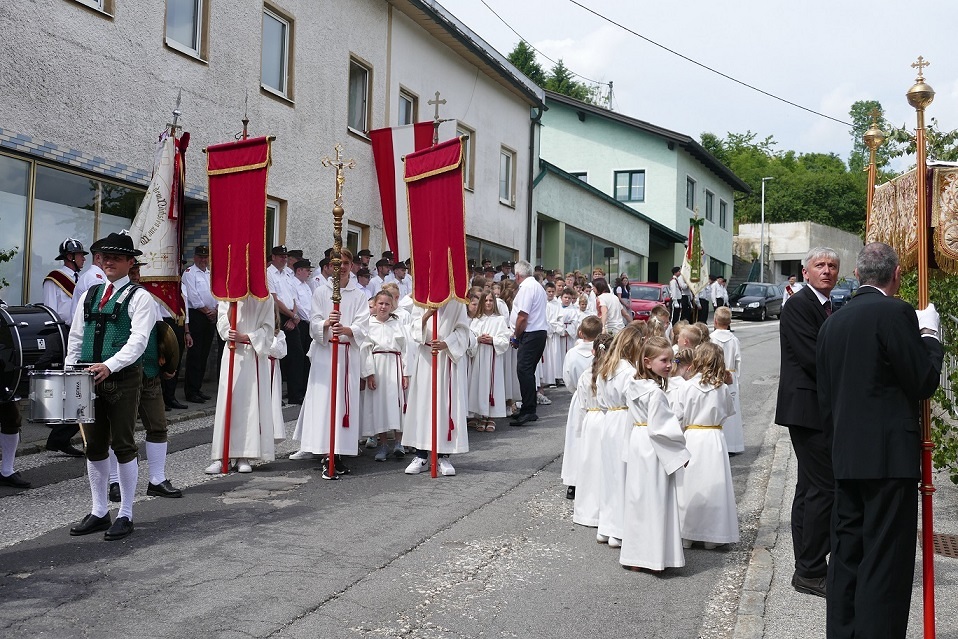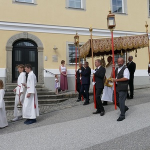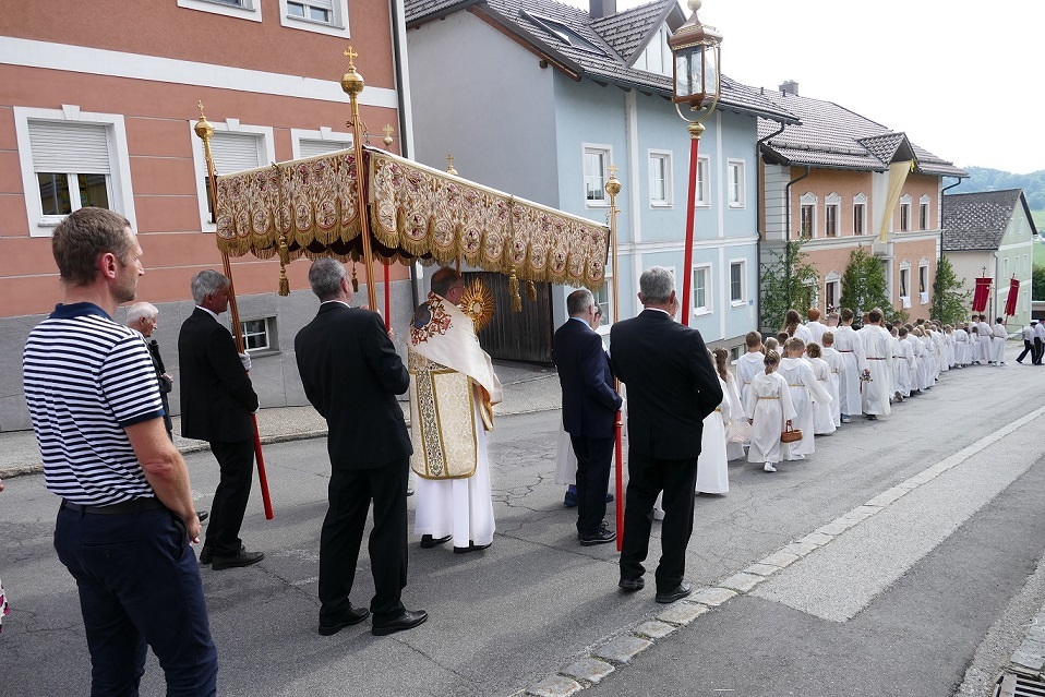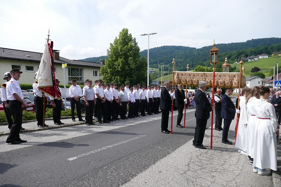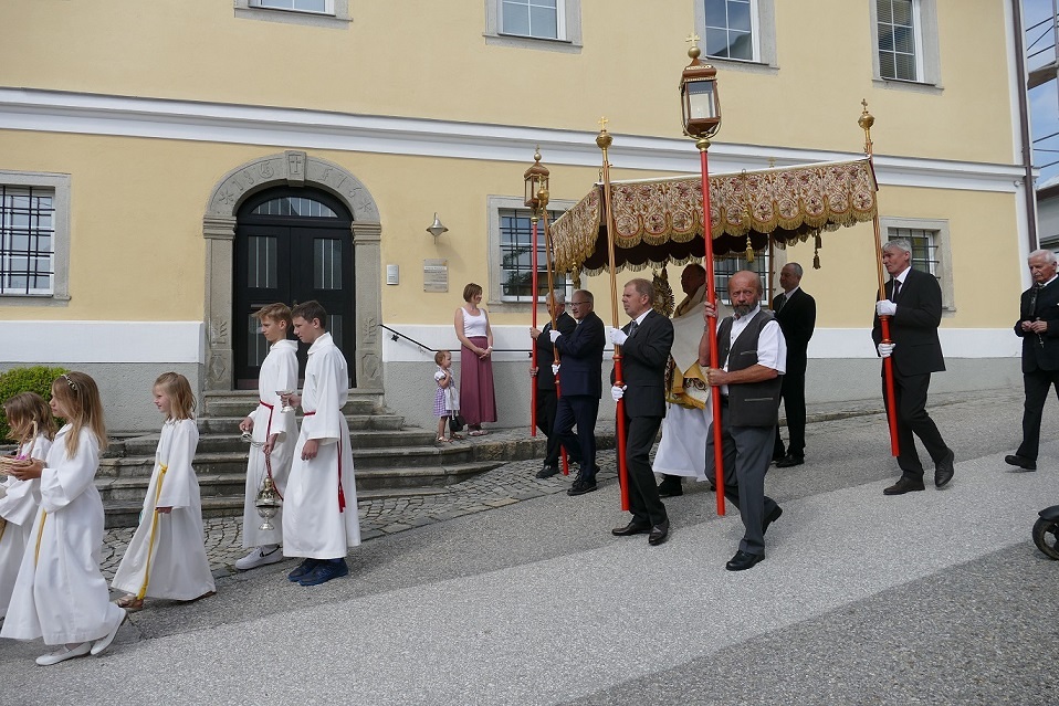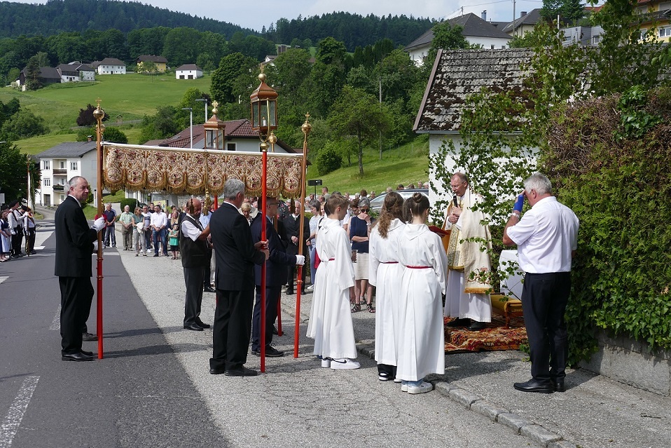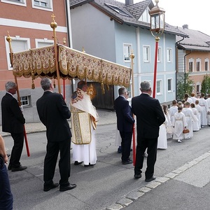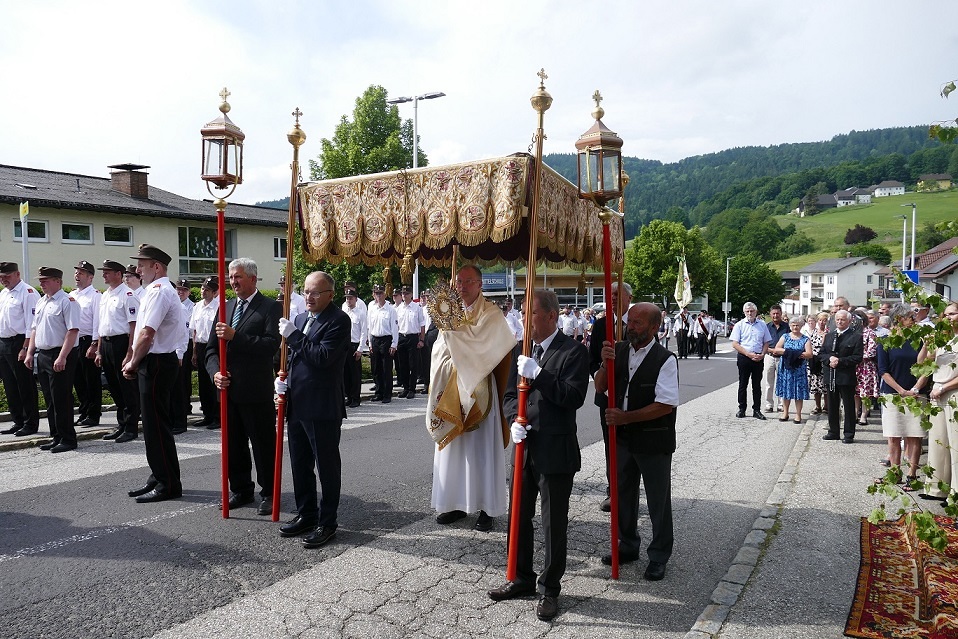 Die traditionelle Fronleichnamsprozession konnte heuer bei strahlend schönem Wetter durchgeführt werden. Die teilnehmenden Vereine und zahlreiche Gläubige zogen zu den vier festlich geschmückten Altären im Markt.