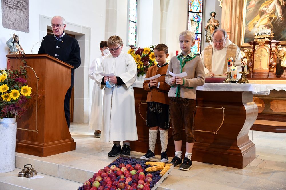 Beim Erntedankfest feierten wir mit den Kindergartenkindern, der Landjugend, der Goldhaubengruppe und den Hochzeitsjubilaren die gute Ernte. Die Landjugend gestaltete traditionsgemäß die Erntekrone. Die Jubelpaare mit 25, 40, 50 und 60 Ehejahren wurden im Anschluss von der Pfarre noch zum Essen eingeladen.