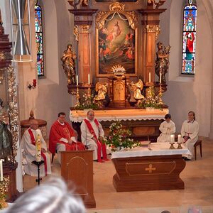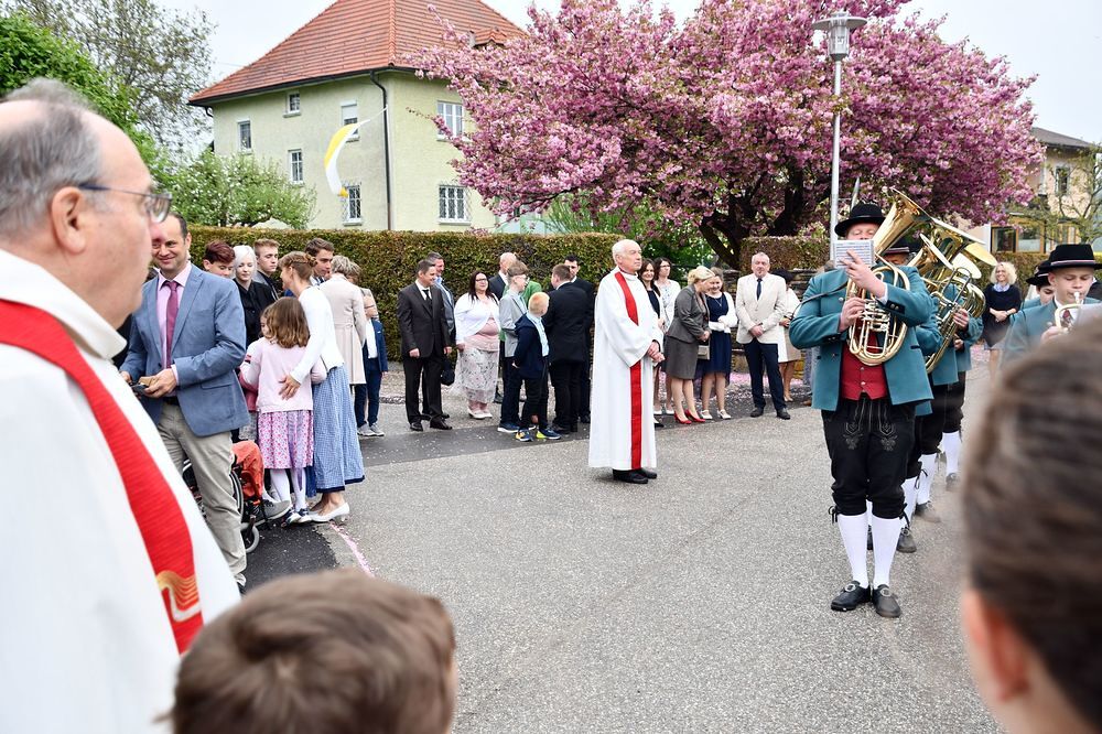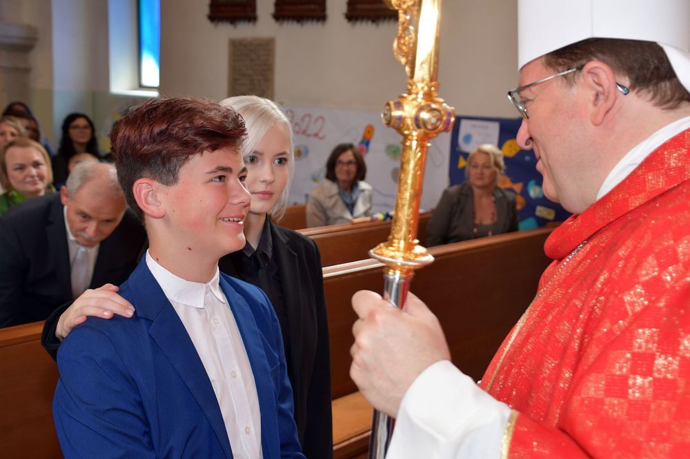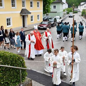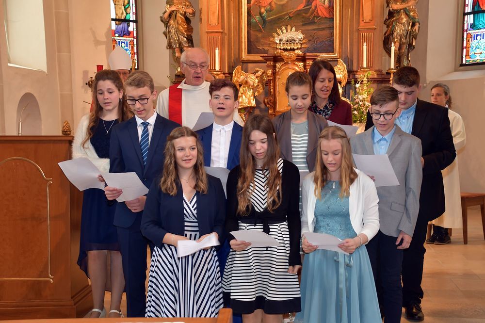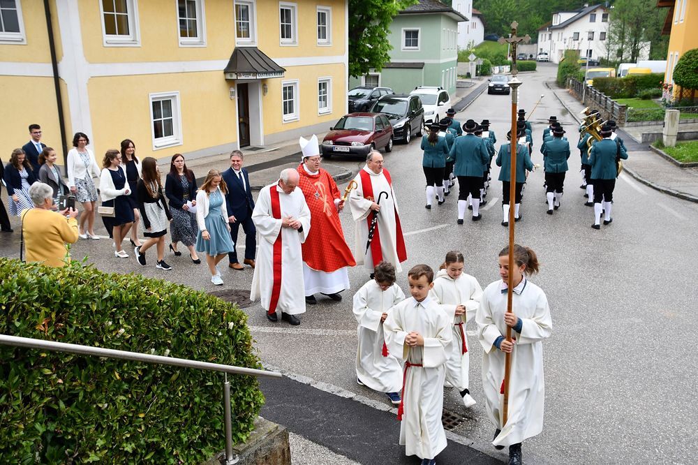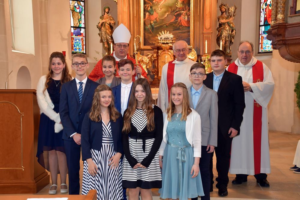 Neun Firmkandidaten feierten die Spendung des Firmsakraments durch Abt Maximilian Neulinger vom Stift Lambach am 7. Mai 2022. Ein Projektchor sang begeisternde Lieder beim Gottesdienst zum Thema: Mutig auf dem Weg.