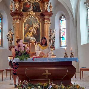 Anlässlich Maria Himmelfahrt organisiert die Goldhaubengruppe erstmals Kräuterbuschen. Diese wurden geweiht und anschließend jedem Kirchenbesucher einer mit nach Hause gegeben.