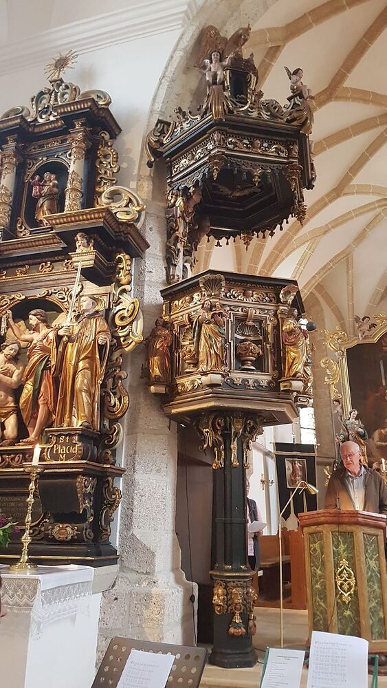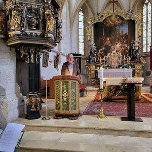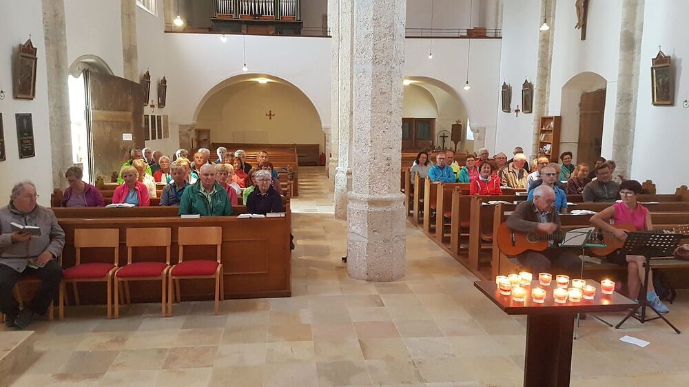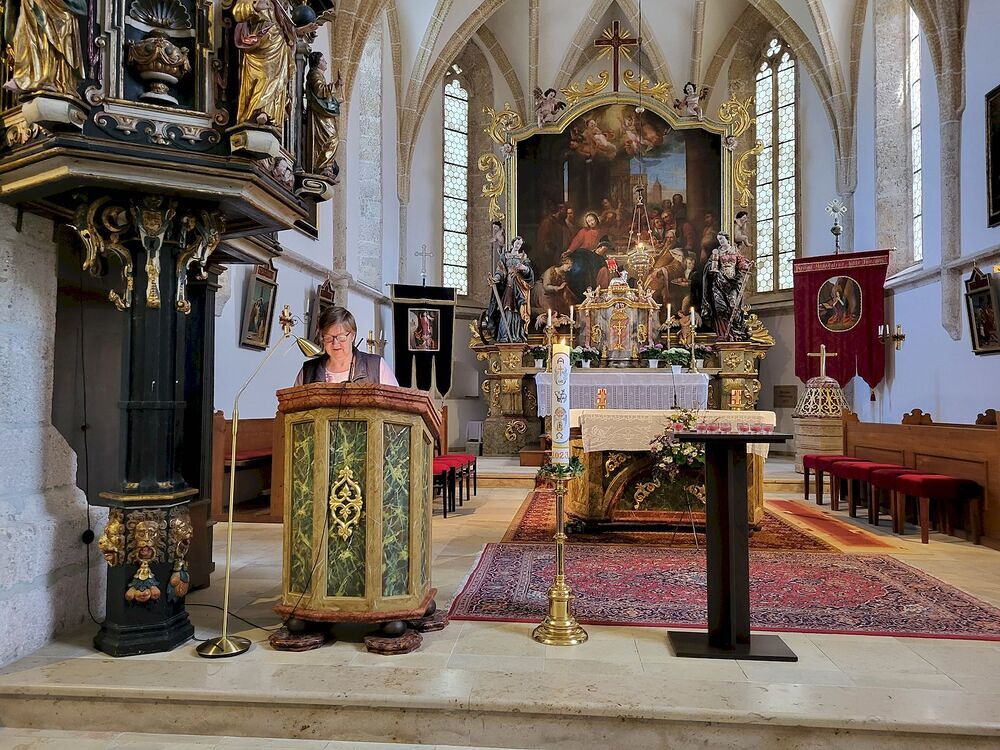 Bei der Andachtsfeier informierte uns die hiesige Mesnerin anfangs über viele interessante Details der Wallfahrtskirche. Die Hl. Maria Magdalena als Apostolin der Apostel war der zentrale Inhalt von Schriftstellen, Gebeten und Liedern, von Mitgliedern der KMB vorgetragen, die die ganze Wallfahrt organisiert hatten. Zum Abschluss kehrten noch die meisten in der Jausenstation Weidenhaid ein, die extra für die Wallfahrer geöffnet hatte.