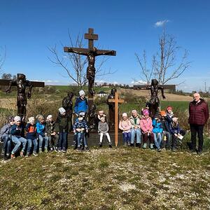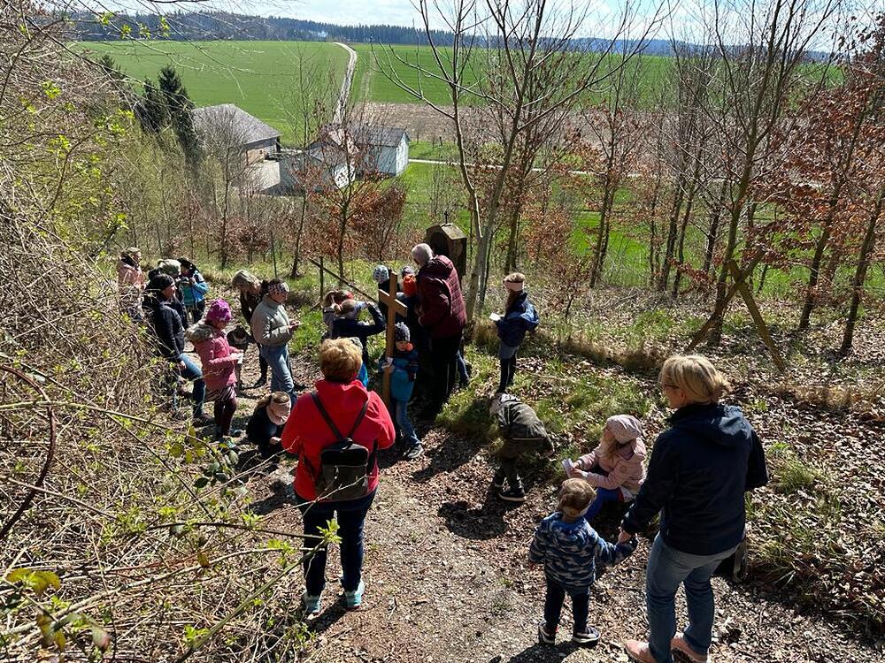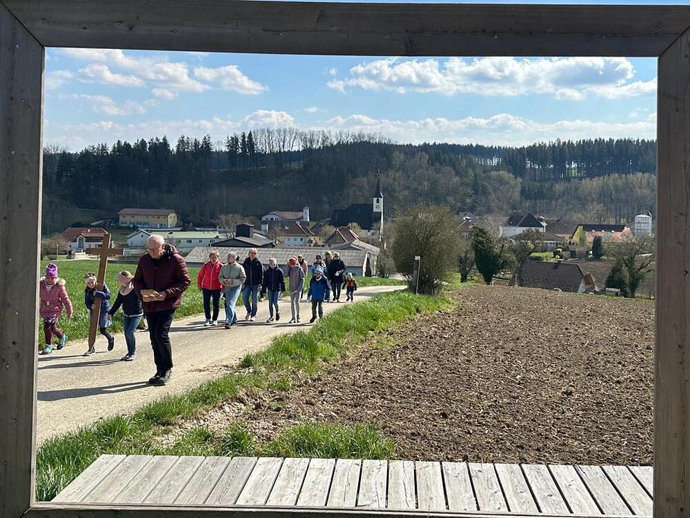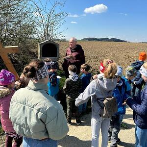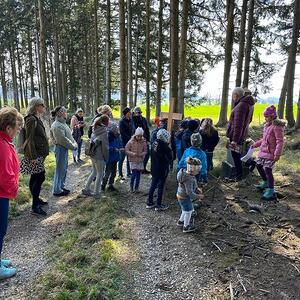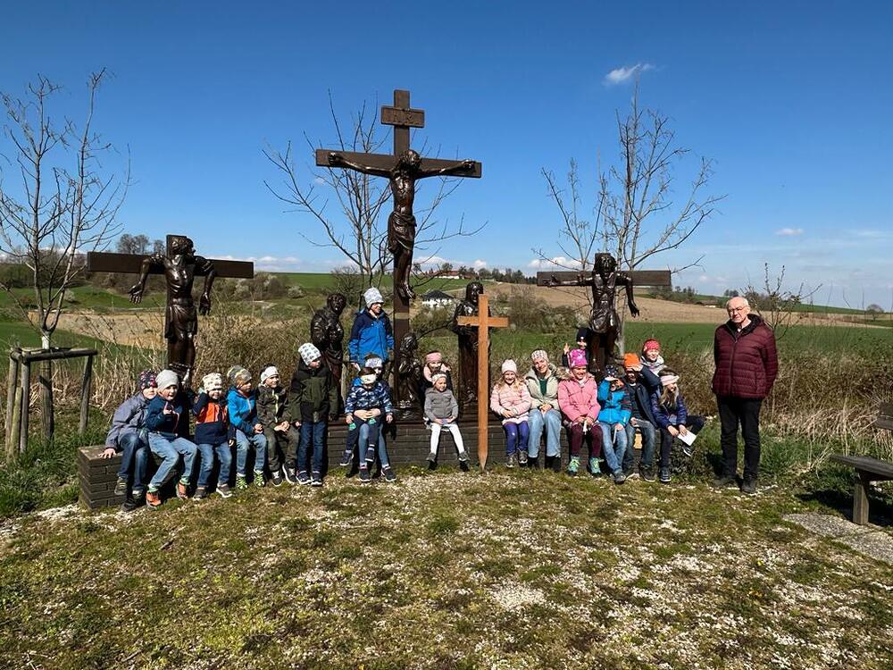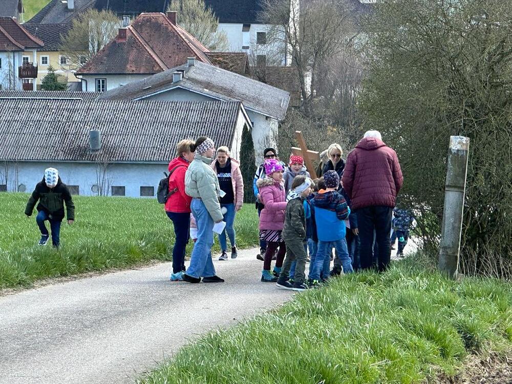 Am Gründonnerstag wurde für Familien mit Kindern das Letzte Abenmahl in der Kirche in Erinnerung gerufen und mit Brot und Saft nachvollzogen. Auf dem Weg nach Felling wurden die Kreuzwegstationen betrachtet.