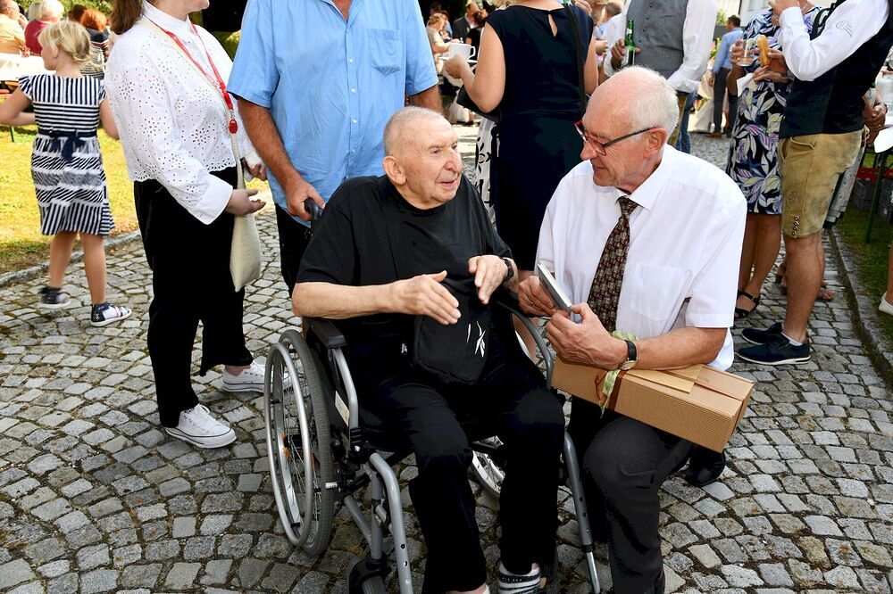 Bgm. Franz Waldenberger ehrte Fritz mit der höchsten Auszeichnung die der Gemeinderat vergeben kann, dem goldene Ehrenzeichen der Gemeinde Pennewang. Der Pfarrgemeinderat überreichte als Präsent ein Buch mit vielen persönlichen Widmungen aus der ganzen Pfarrgemeinde und als Krönung ein Marterl aus Granit, worüber sich der Empfänger sehr freute.