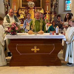 Mitte Juni besuchte unser Bischof Manfred Scheuer mit dem Visitatorenteam Generalvikar DDr. Severin Lederhilger, Bischofsvikar Msgr. Wilhelm Vieböck und Mag. Brigitte Gruber-Aichberger das gesamte Dekanat Gaspoltshofen. Das Visitatorenteam interessierte sich dafür wie bei uns "der Hase läuft" und bot uns allen viele Gelegenheiten um sie und unsere Mitmenschen aus dem Dekanat besser kennenzulernen.