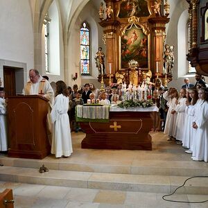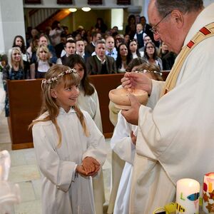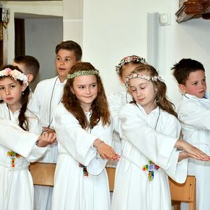 Wir freuen uns, dass zwölf Kinder aus Pennewang feierlich das erste Mal das Sakrament der Kommunion empfangen konnten.