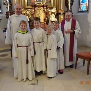 Die Ministrantengruppe besteht insgesamt aus 12 bis 18 Mädchen und Buben.