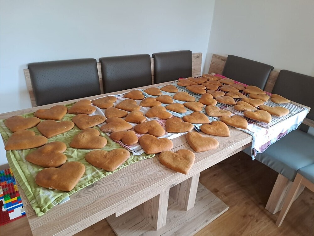 Der Kinderliturgiekreis verkaufte heuer wieder selbstgebackene und bunt verzierte Lebkuchen zum Liebstattsonntag. Im Rahmen der Musikermesse gab es regen Andrang und so fanden die rund 300 Lebkuchenherzen rasch zahlreiche Abnehmer*innen. Bei der großen Auswahl an Sprüchen und Motiven viel die Entscheidung zwar schwer, jedoch war für jede*n etwas passendes dabei.