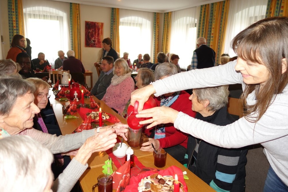 Mariä Empfängnis, Tag der Älteren und Geburtstagsgottesdienst für die besonderen Jubilare des zweiten Halbjahres 2022, all das feierten wir am 8. Dezember 2022 mit unserem Kaplan Kenneth Ttyaaba. Nach dem Gottesdienst lud das Team Soziales alle Seniorinnen und Senioren ins Pfarrheim ein - und sie kamen. Nach einer zweijährigen Pause füllte sich der Pfarrsaal bis auf den letzten Platz. Es war spürbar, wie sehr sich alle über ein Wiedersehen und ein gemütliches Beisammensein gefreut haben.