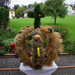 Die Landjugend hat uns wieder eine wundervolle Erntekrone gebunden und sich auch aktiv am Fest beteiligt. Dafür ein herzlicher Dank.