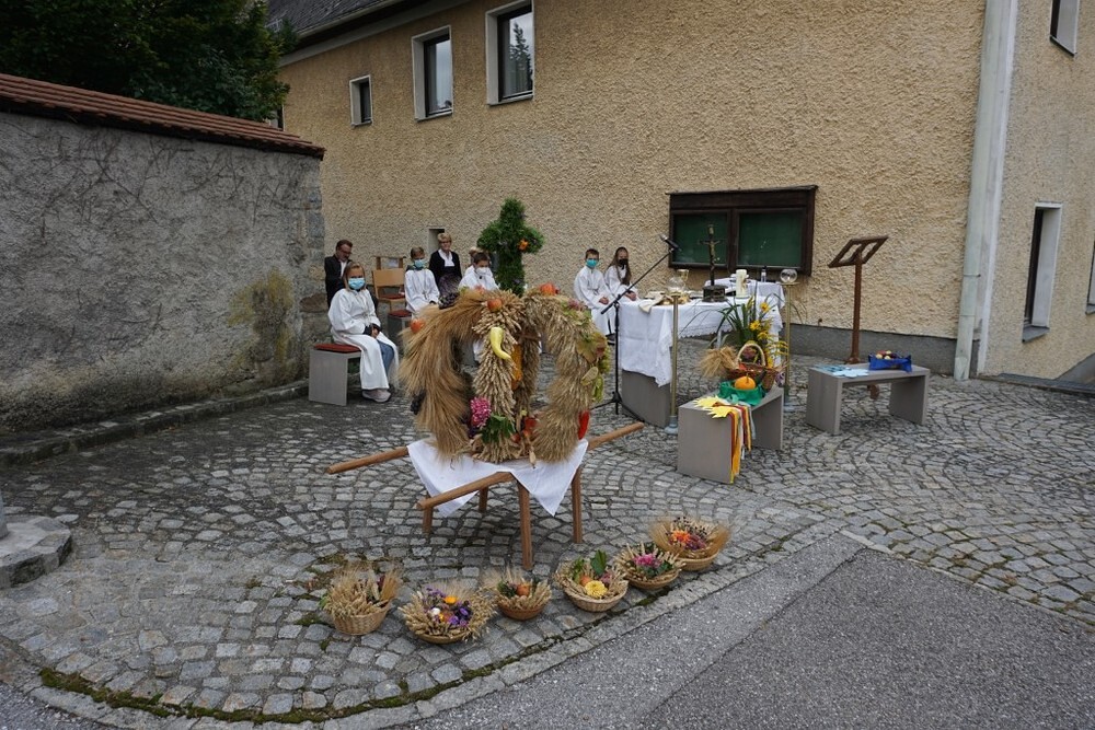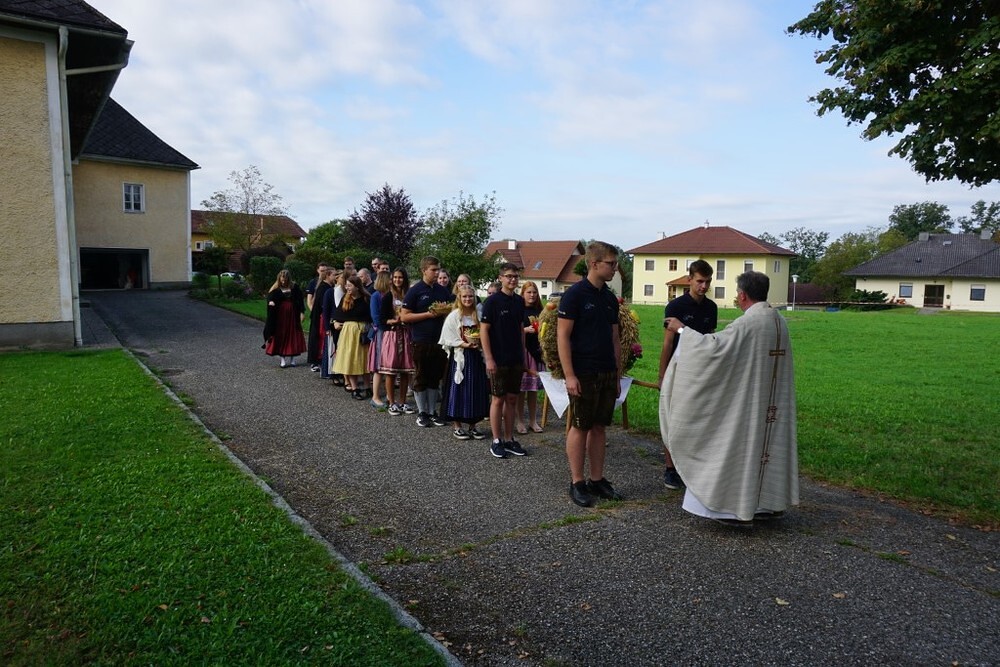 In seiner Predigt betonte Pfarrer Konrad Hörmanseder, dass es nicht selbstverständlich ist, eine gute Ernte zu haben. Die Witterungseinflüsse der Natur, haben so manche Ernte schon zu Nichte gemacht.